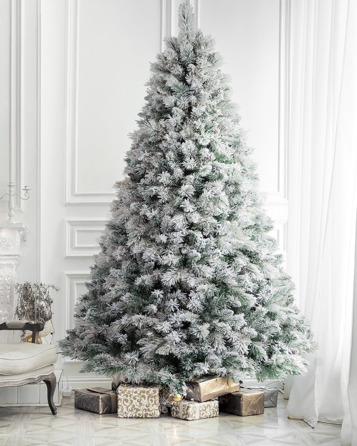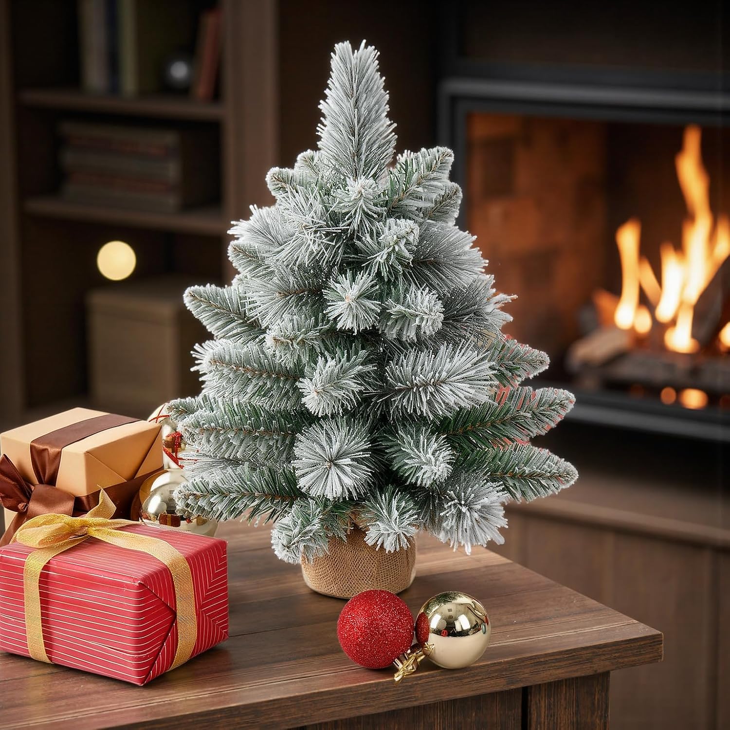 1.45FT Snow Flocked Artificial Christmas Tree | Unlit Full Spruce Branches