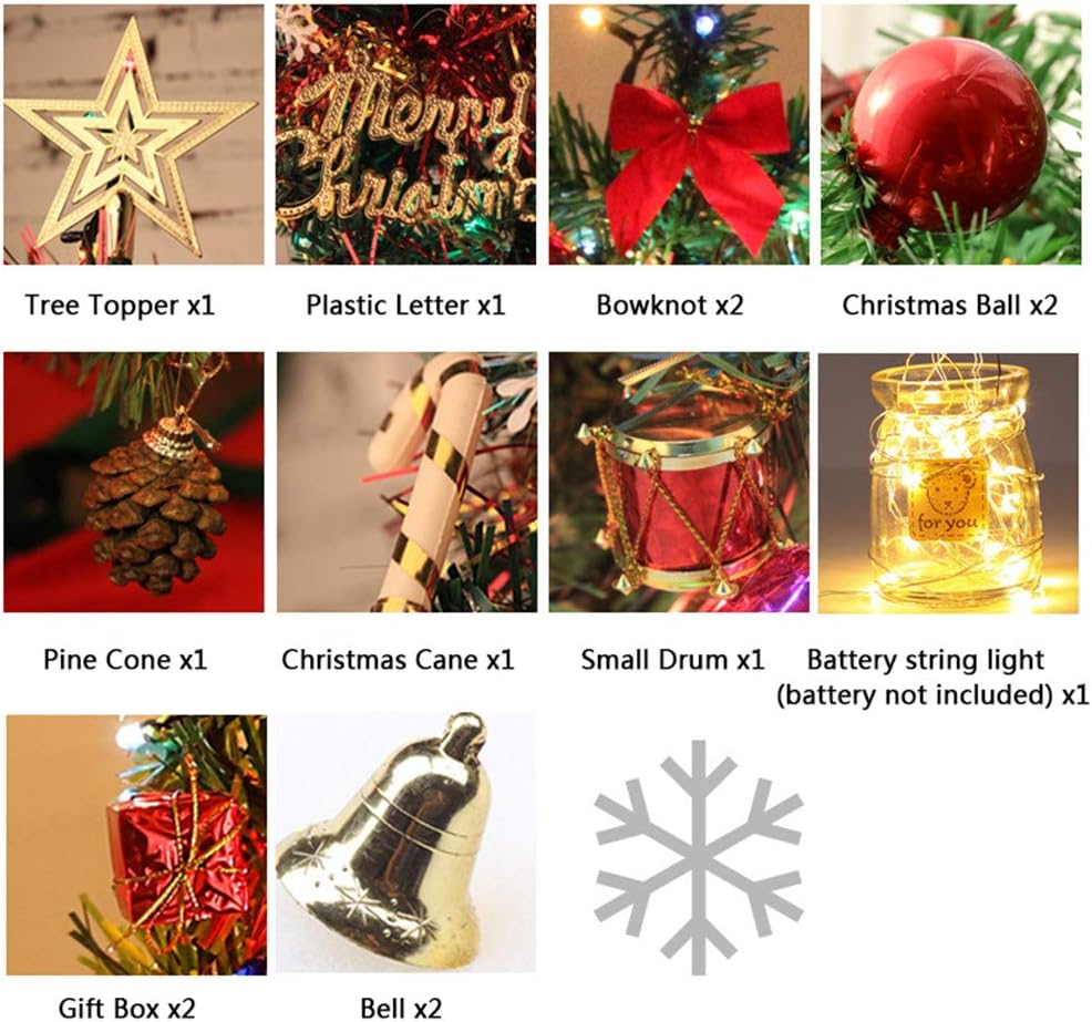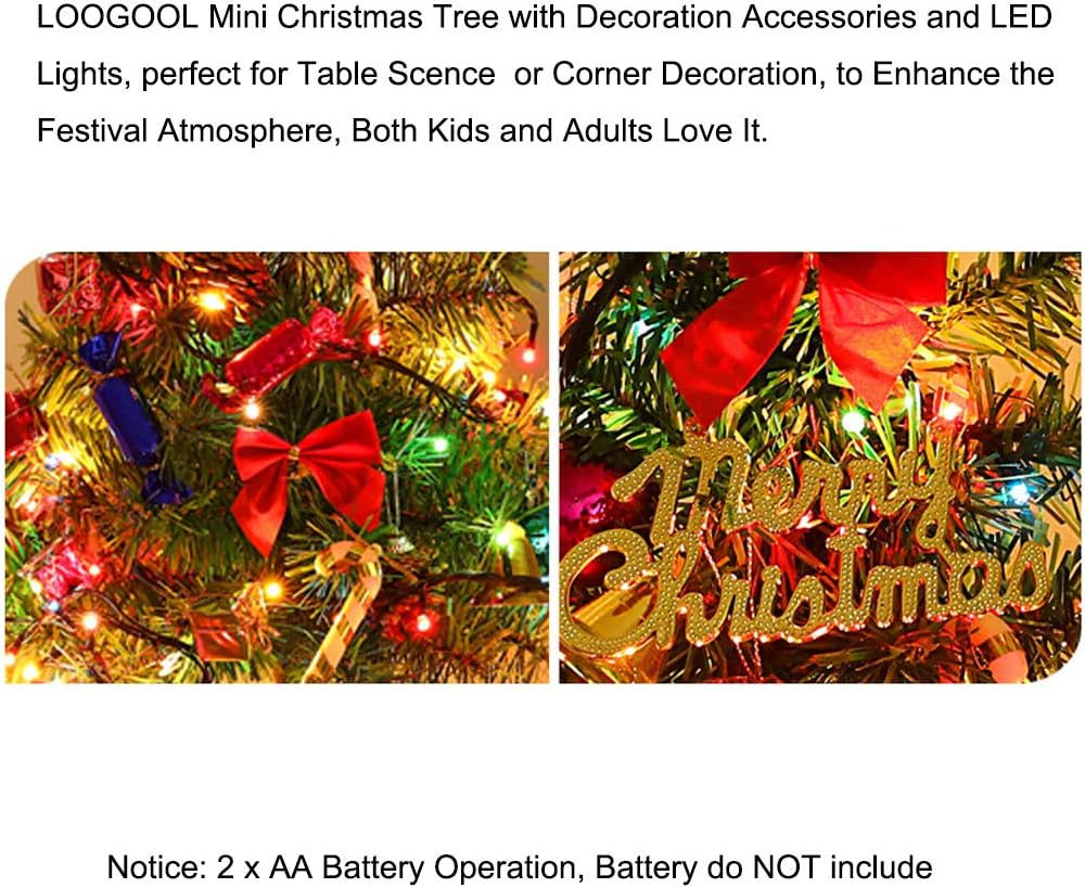 12 Inch Mini Tabletop Christmas Tree with LED String Lights and Ornaments