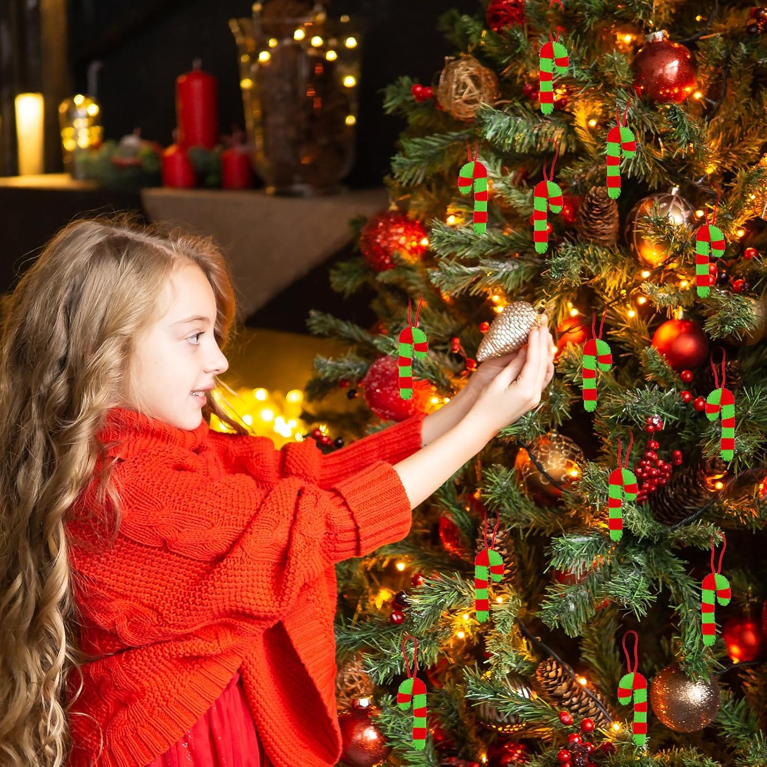 - Christmas-Themed Design: Each ornament features a red and green candy cane, adding a playful, seasonal touch.