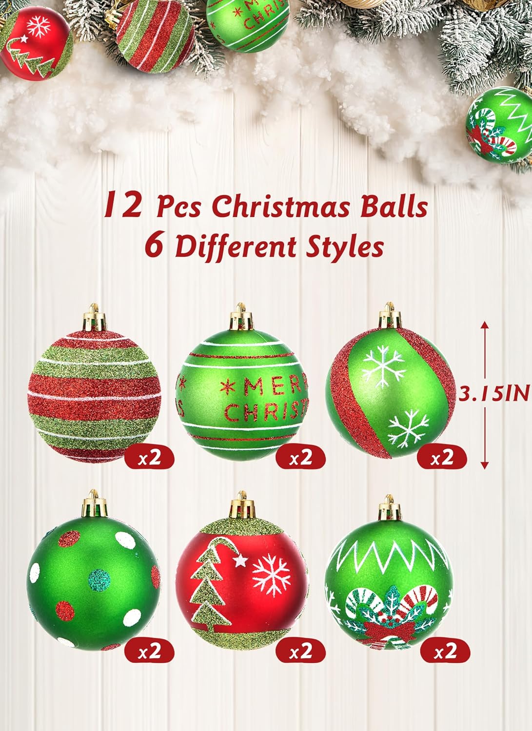 - Includes 12 pieces of Christmas ball ornaments in 6 different styles (2 of each style)