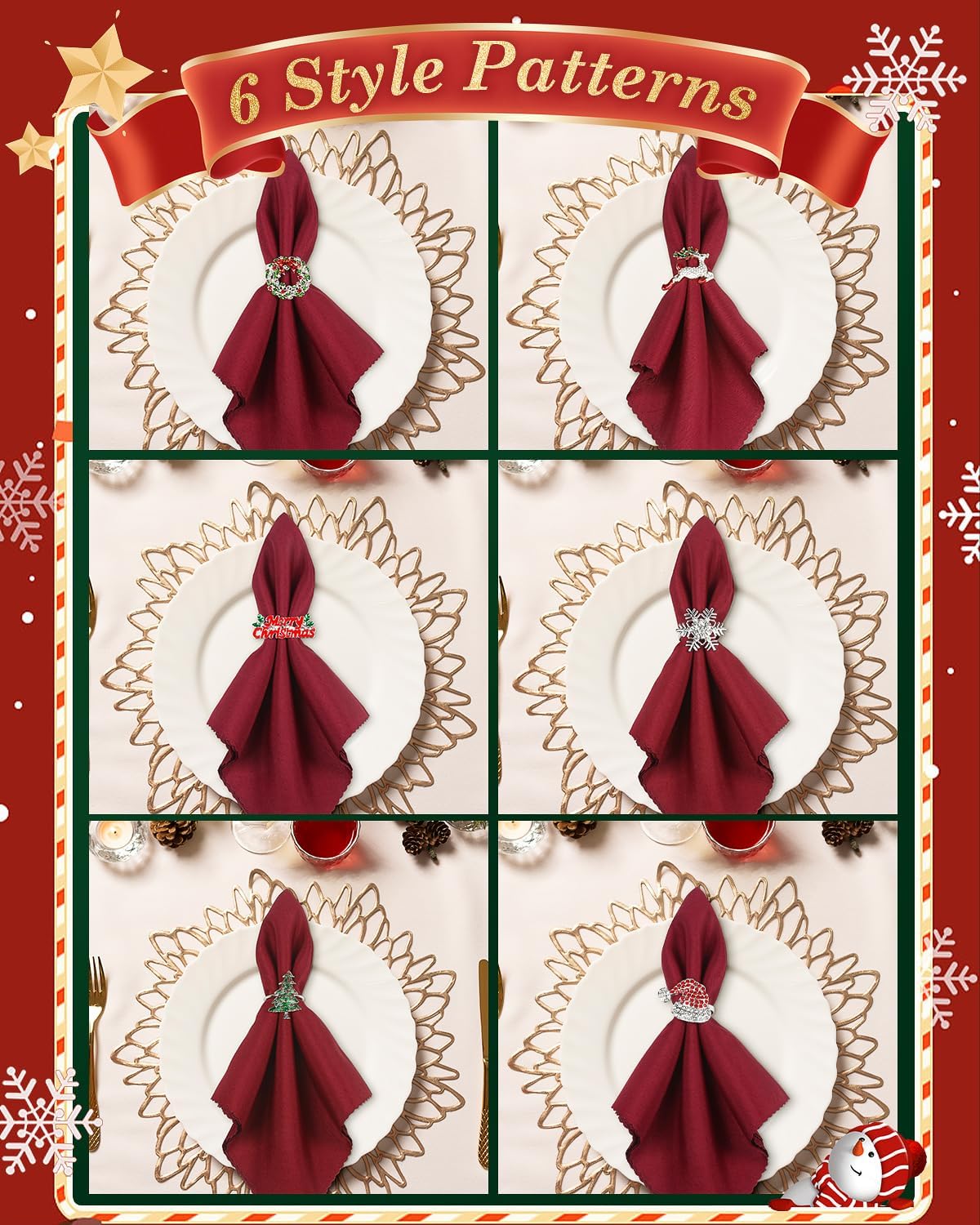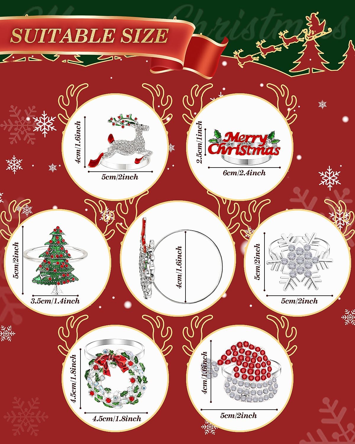 Add a touch of holiday charm to your table setting with the KPOSIYA Christmas Napkin Ring Set. This set includes 12 elegant metal napkin rings, each designed to fit most napkins, adding a sophisticated flair to your festive gatherings. Crafted from high-quality materials, these silver napkin rings feature intricate designs such as snowflakes, Christmas trees, Santa hats, elk, wreaths, and "Merry Christmas" lettering, creating a warm and inviting atmosphere for your Christmas celebrations.