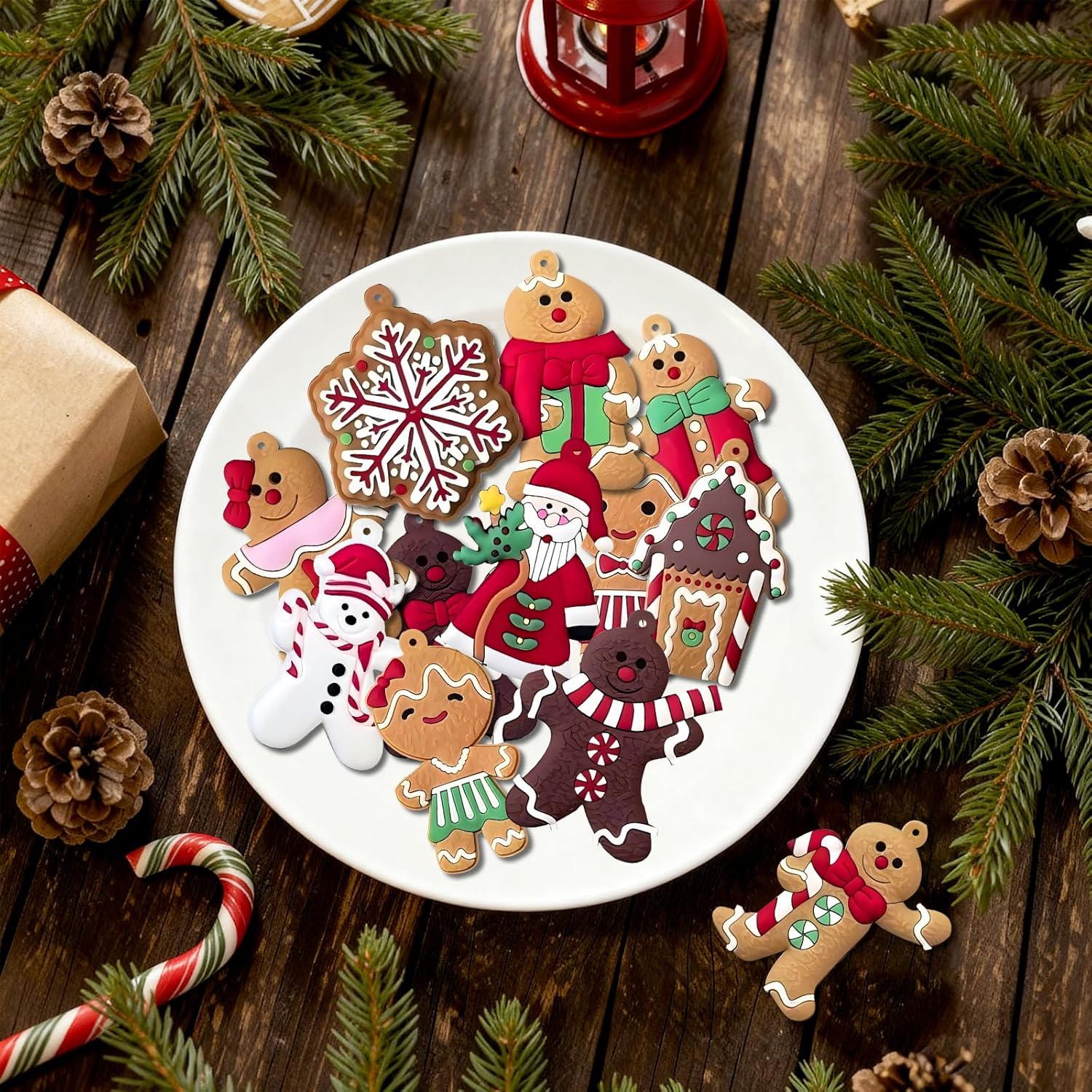 12PCS Christmas Tree Ornaments – Cute Snowman, Santa Claus, Gingerbread & Assorted Decorations