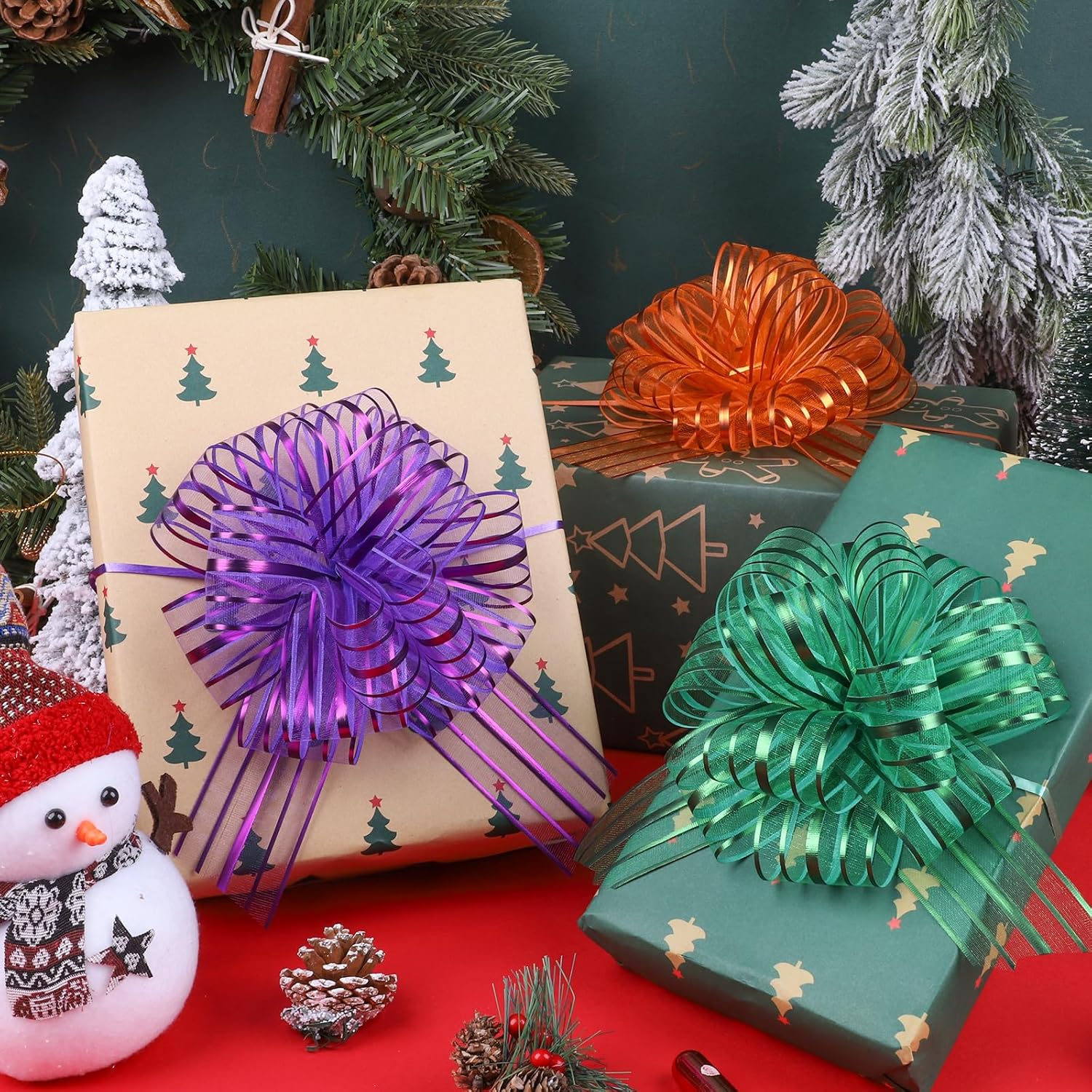 12PCS Mixed Color Pull Bow Ribbons 6 Inch Large Gift Bows for Presents
