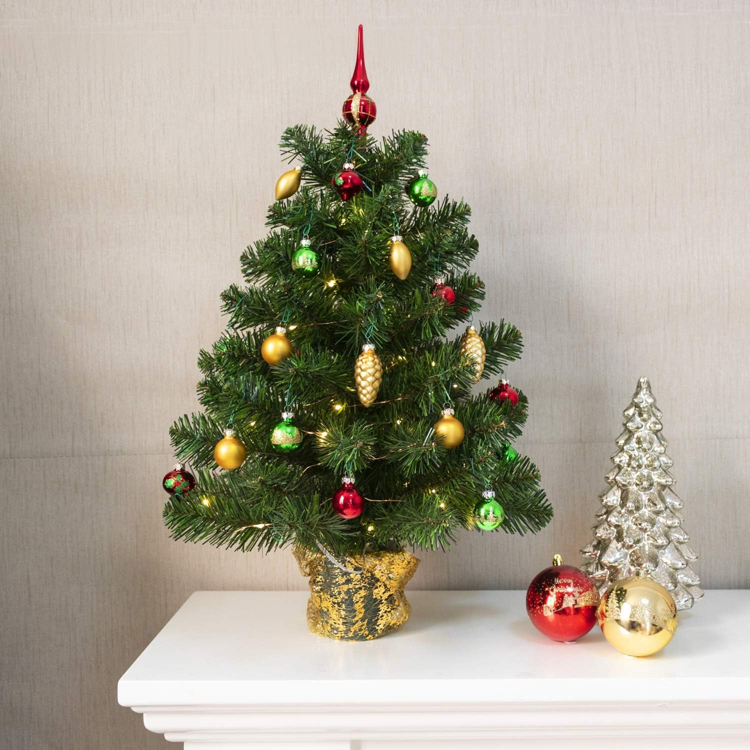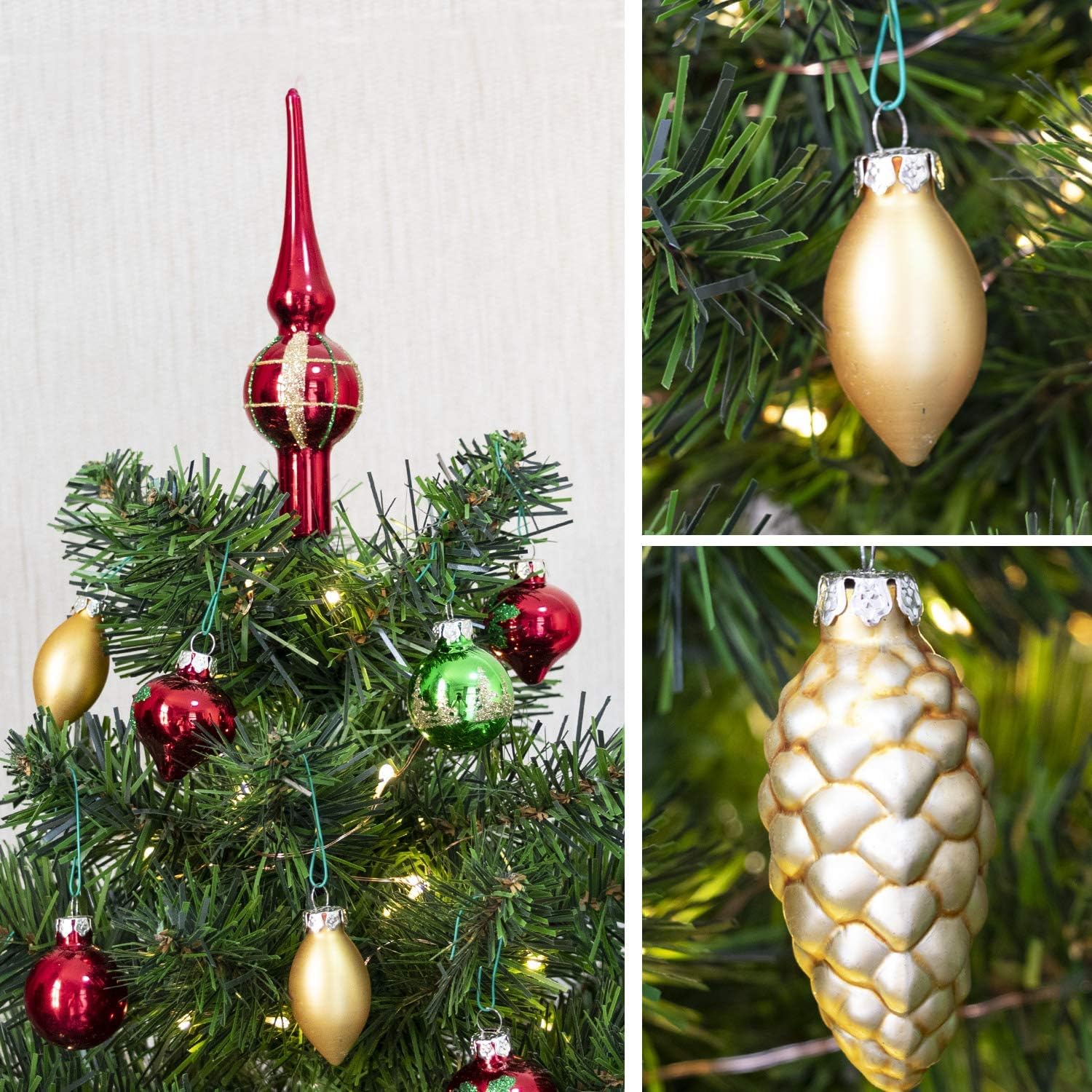 15 PCS Mini Christmas Ornaments Red Gold Green Glass Tree Decorations