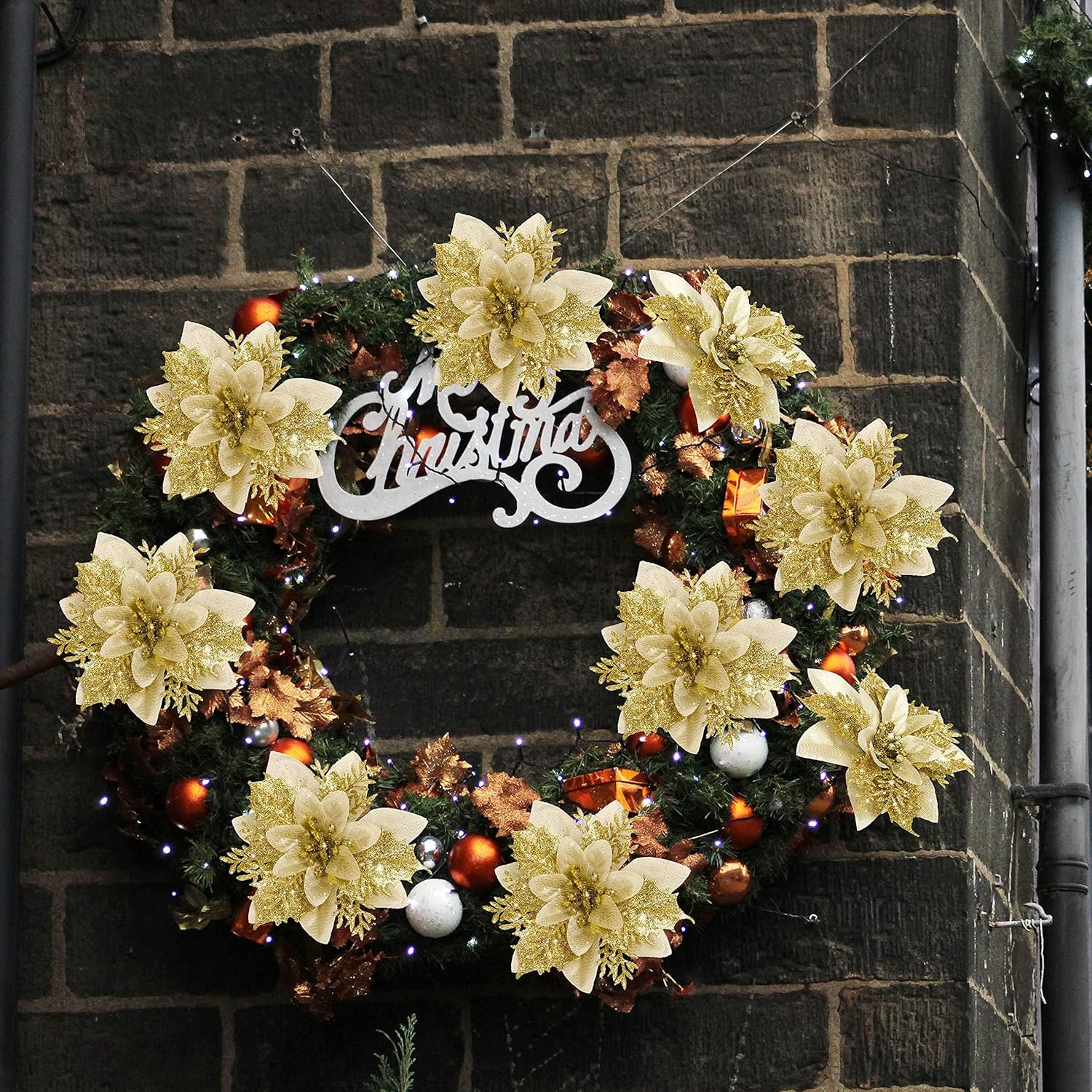 - Complete Set: Includes 16 glitter poinsettia flowers in a vibrant gold finish.