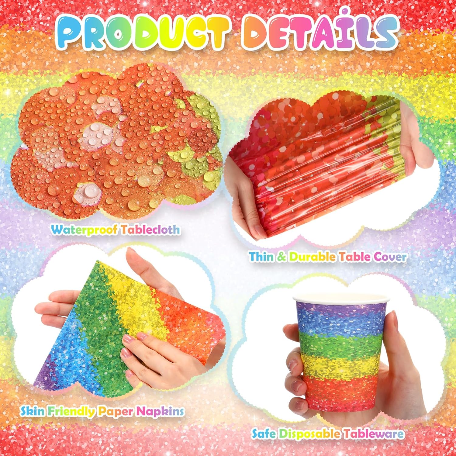 169pcs Rainbow Party Set – Plates, Cups, Napkins & Tableware for 24 Guests