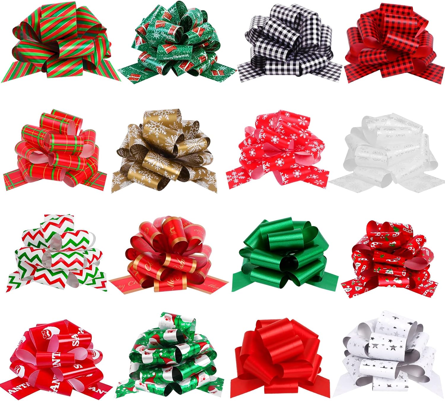 - Set of 16 Christmas wrap bows, each with a unique design—no duplicates