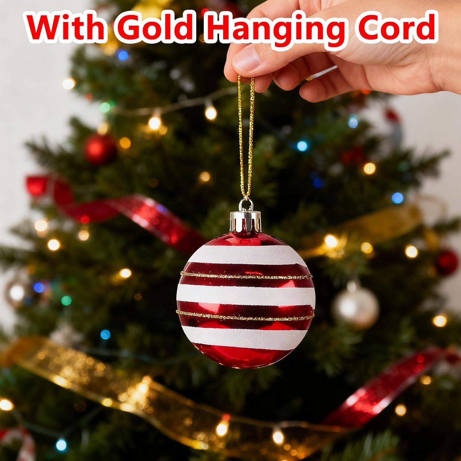 16PCS Red and White Christmas Ornaments Set with Hanging Strings for Tree