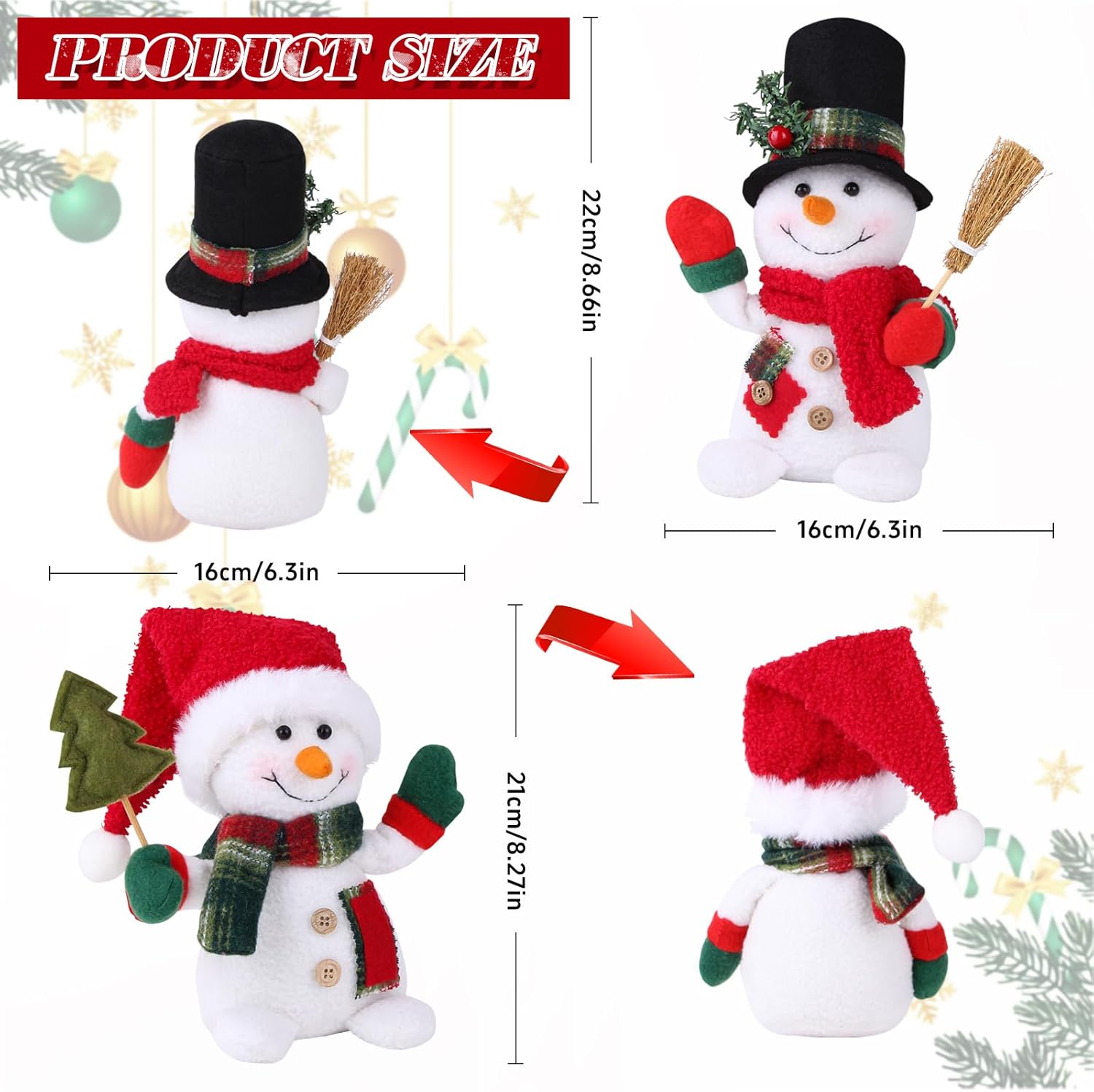 Add a touch of winter magic to your home with these adorable Christmas snowman tabletop decorations! This set includes two charming snowmen, designed in soft, fluffy white that gives them the appearance of freshly fallen snow. These cute snowman shelf sitters are dressed in festive hats and scarves, and their arms are equipped with bendable wires, allowing you to adjust their shape for the perfect look. With their flat bottoms, they sit firmly on any even surface, making them ideal for Christmas displays. Their playful design and warm, cozy details will bring cheer to your home, office, or workspace.