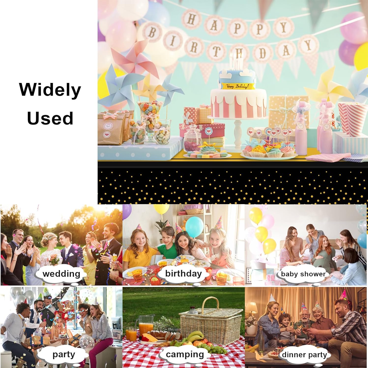 Protect your table in style with this black and gold disposable tablecloth set. Waterproof, stain-resistant, and durable, these 54 ×... Read more