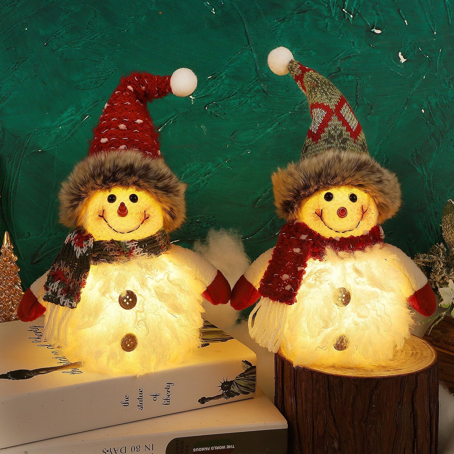 - 2-Pack Snowman Set: Includes two plush, lighted snowmen with classic holiday style