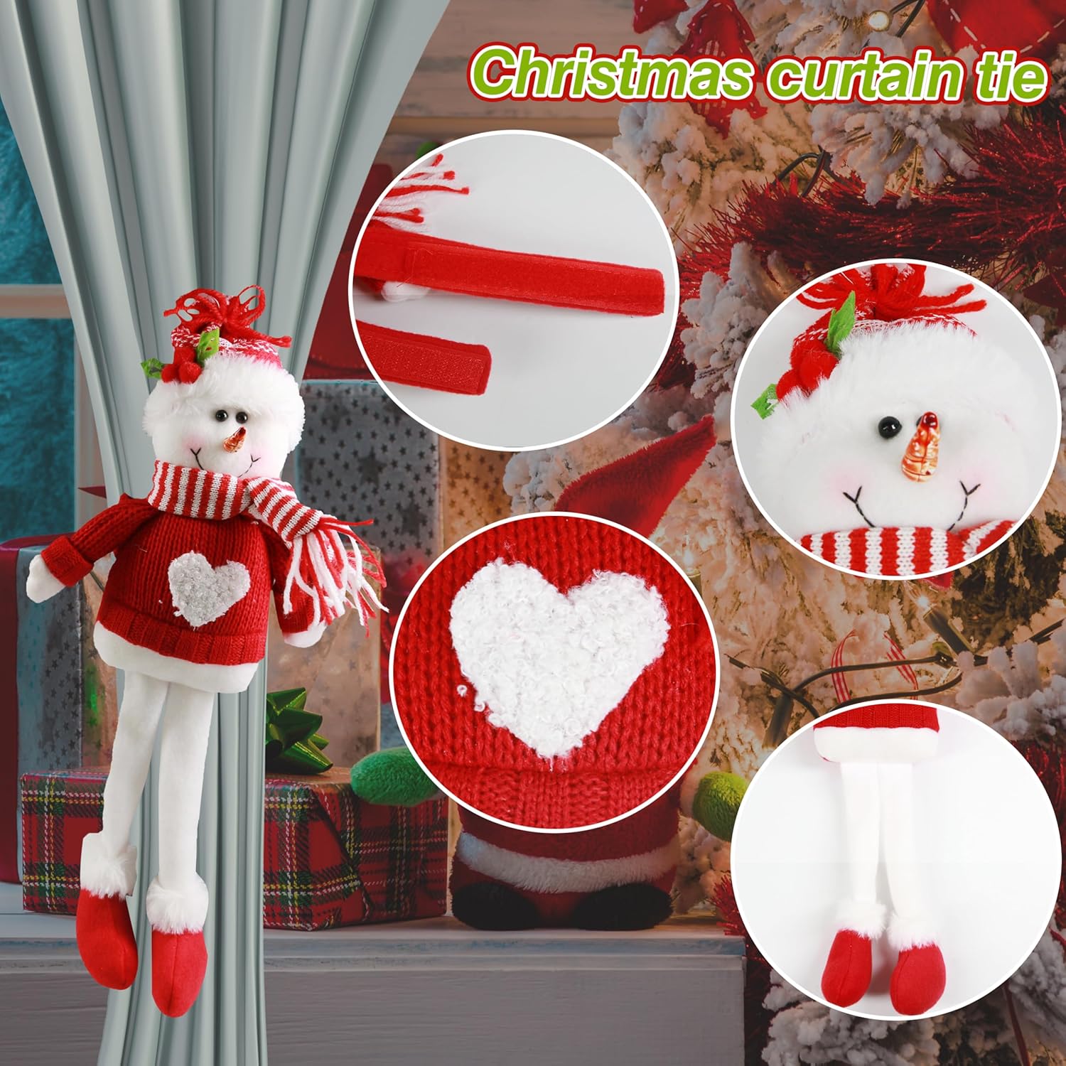 - Includes 2 festive curtain tiebacks: Mr. Snowman and Santa Claus
