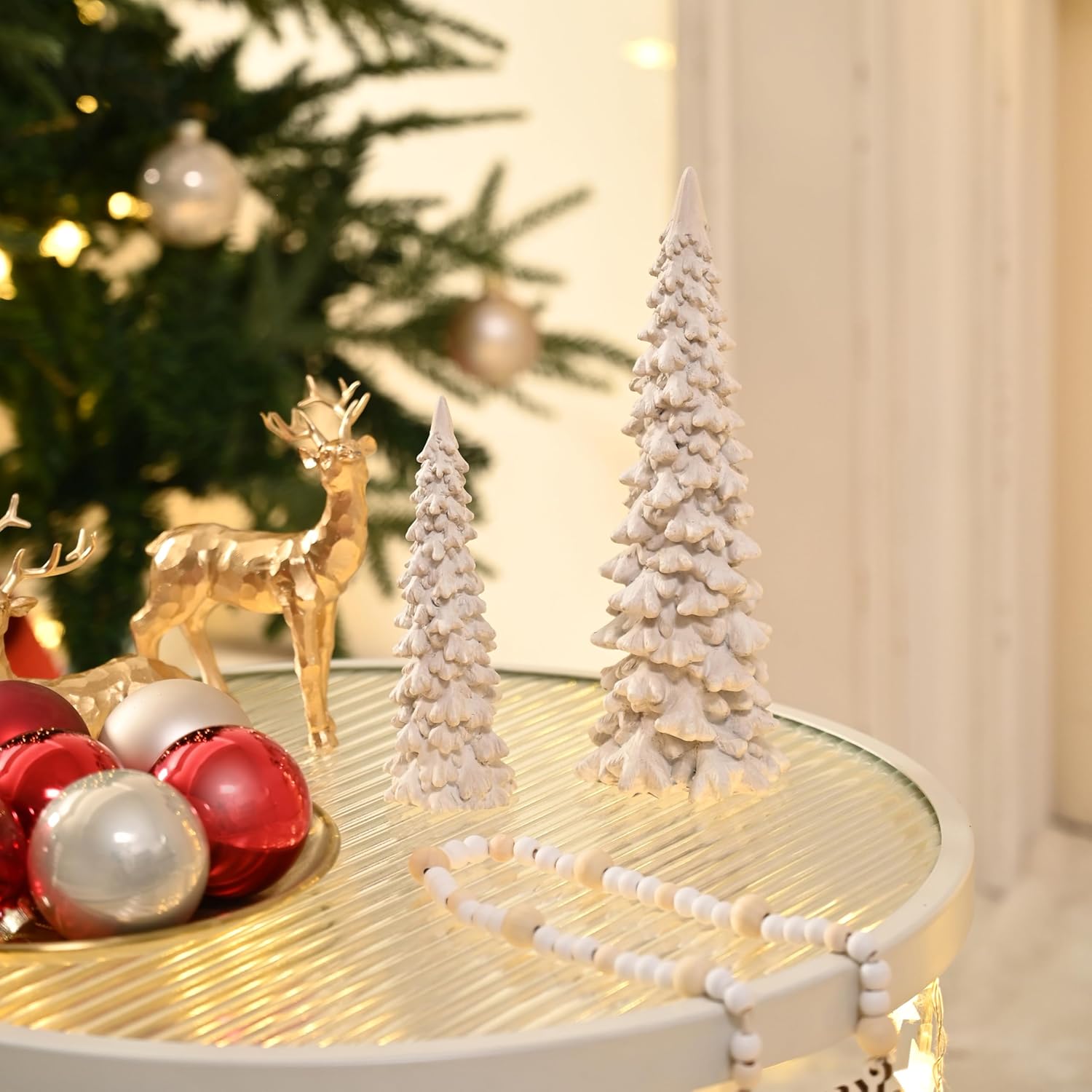2 PCS Small Resin Christmas Trees Figurines Mini Xmas Tree Set for Home