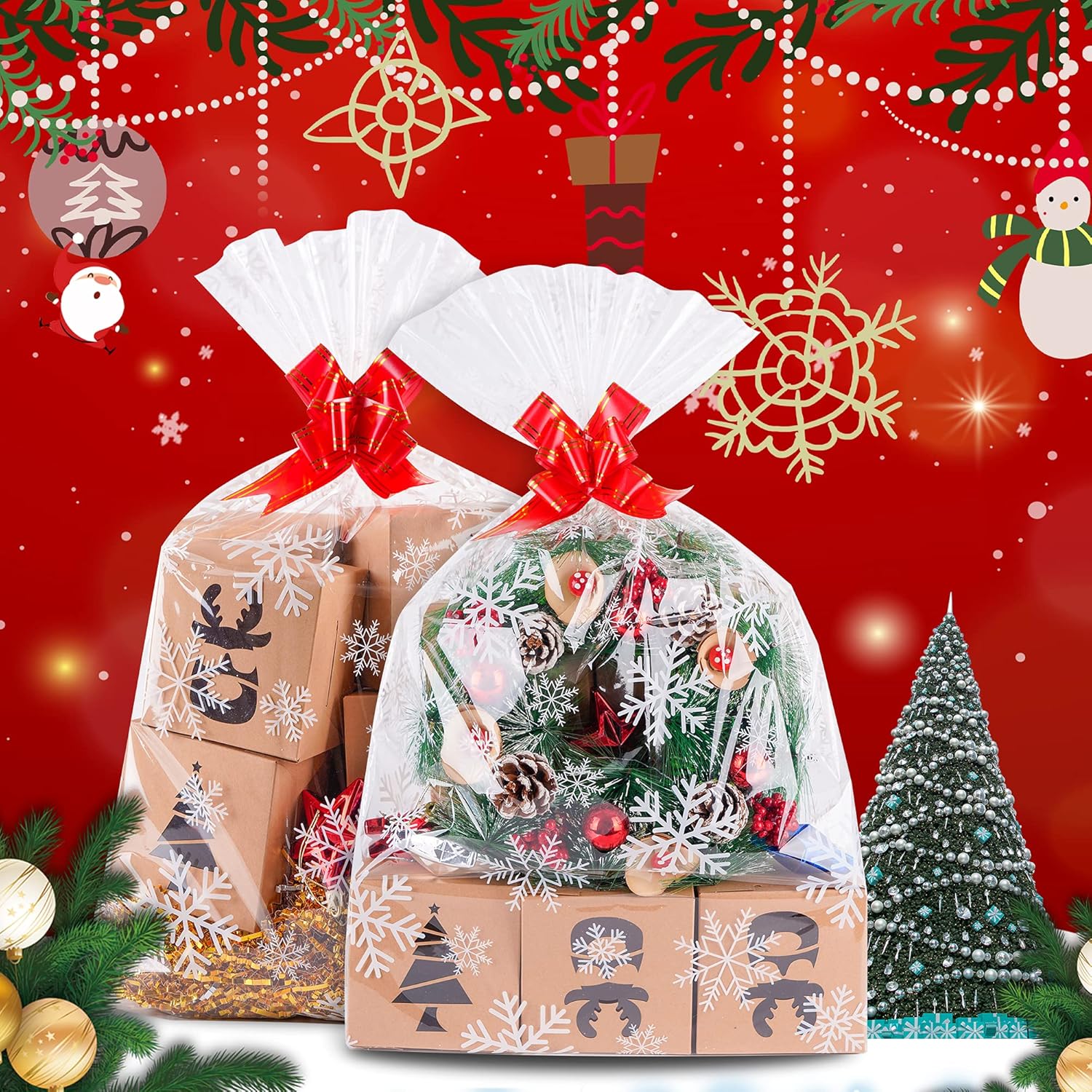 Get ready for the holidays with this Snowflake Basket Bag Set, which includes a total of 10 pieces of snowflake-themed bags and 10 pull bows to tie them closed. These bags are perfect for winter wonderland parties, Christmas celebrations, or any holiday-themed activities. The 12x18 inch and 16x24 inch sizes are ideal for wrapping baskets, wine bottles, or odd-sized gifts, adding a festive touch to your presents.