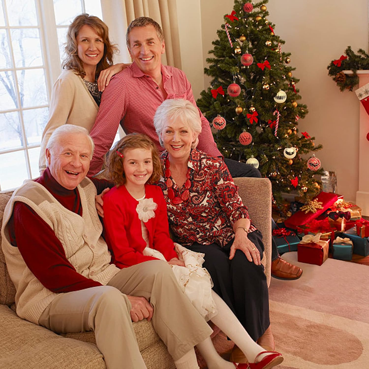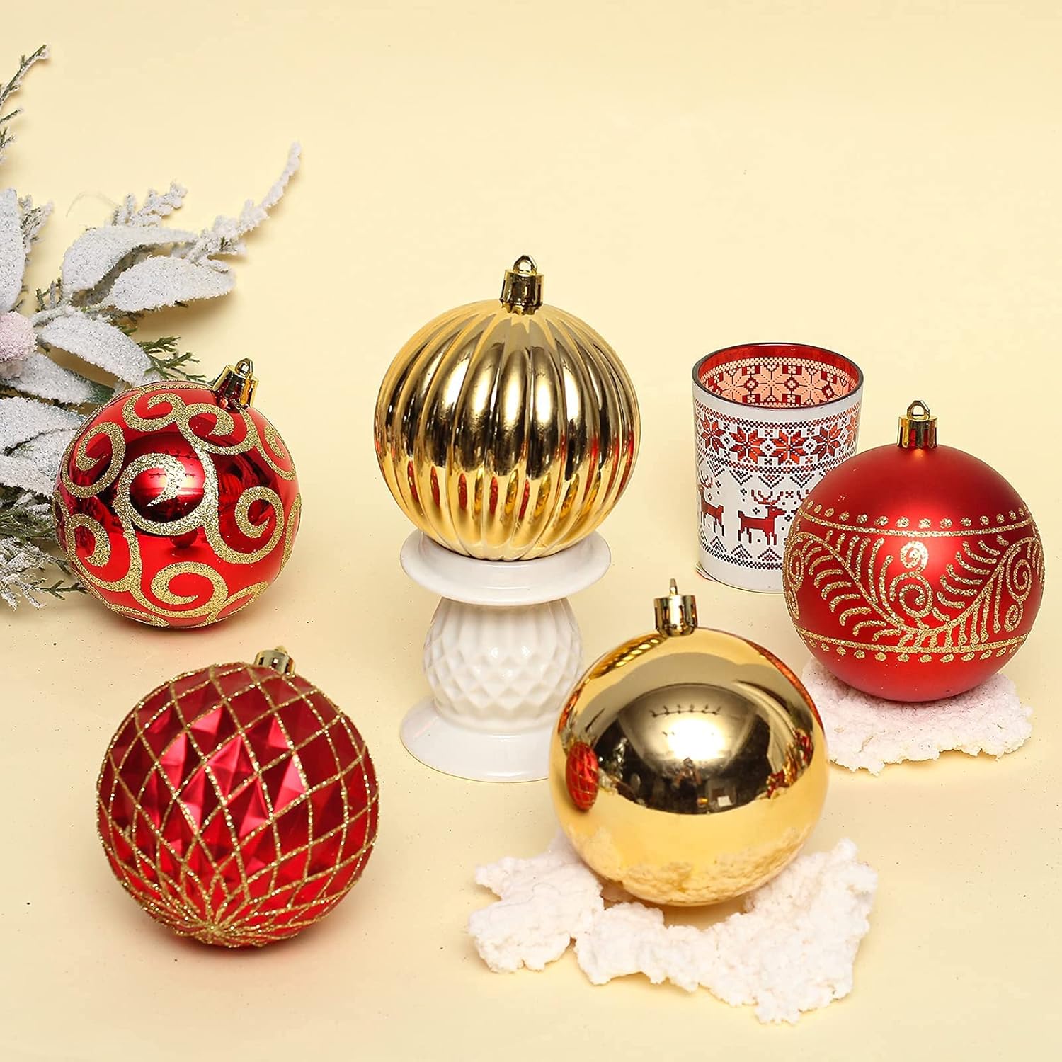 Add a touch of festive elegance to your Christmas tree with this stunning 20-piece ornament set! Each ornament in the set measures 3.16 inches, making them the perfect size to decorate your tree with bold, eye-catching gold and red baubles. These large ornaments are ideal for both traditional green trees or flocked snow trees, creating a warm and welcoming atmosphere. Featuring intricate painted patterns, these shatterproof decorations offer all the beauty of glass baubles but are crafted from durable plastic, making them safe for homes with children and pets. With six different finishes and designs, these ornaments bring a unique and charming touch to your holiday décor.