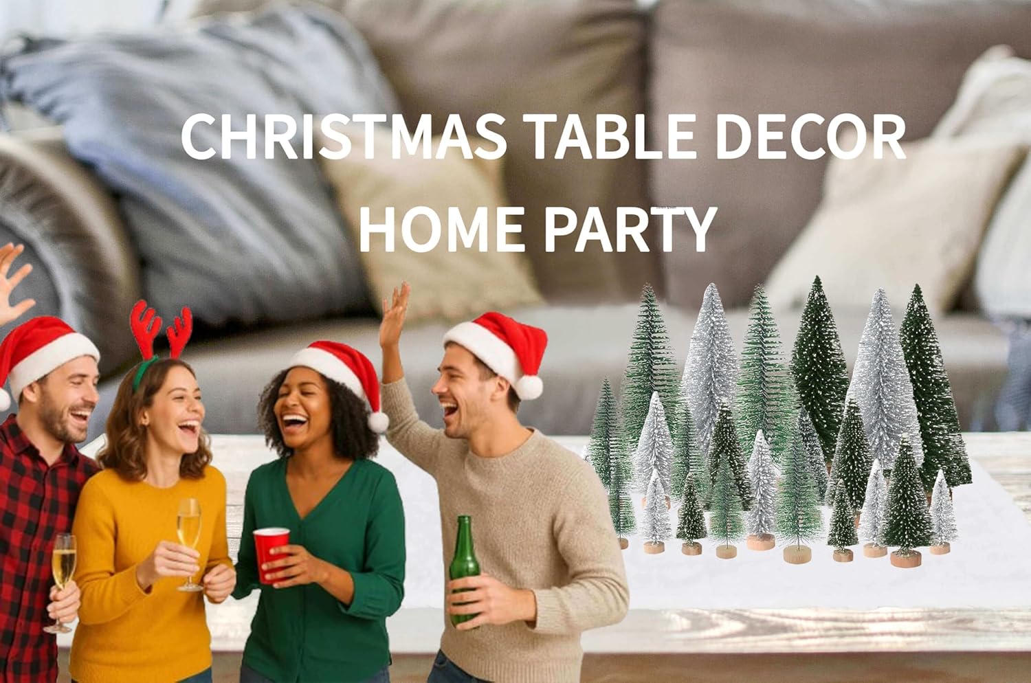 Bring a charming, festive touch to your holiday décor with this versatile mini Christmas scene set. Perfect for creating DIY craft projects, decorating Christmas village displays, or adding winter wonderland flair to your tabletops and windows. This set includes mini bottle brush trees in three sizes (3.3", 4.1", and 4.9") and a soft snow blanket measuring 19.7" x 11.8" to help you build a cozy, realistic miniature scene. Whether you're crafting, decorating, or setting up a centerpiece, this compact set adds seasonal cheer wherever it’s used.