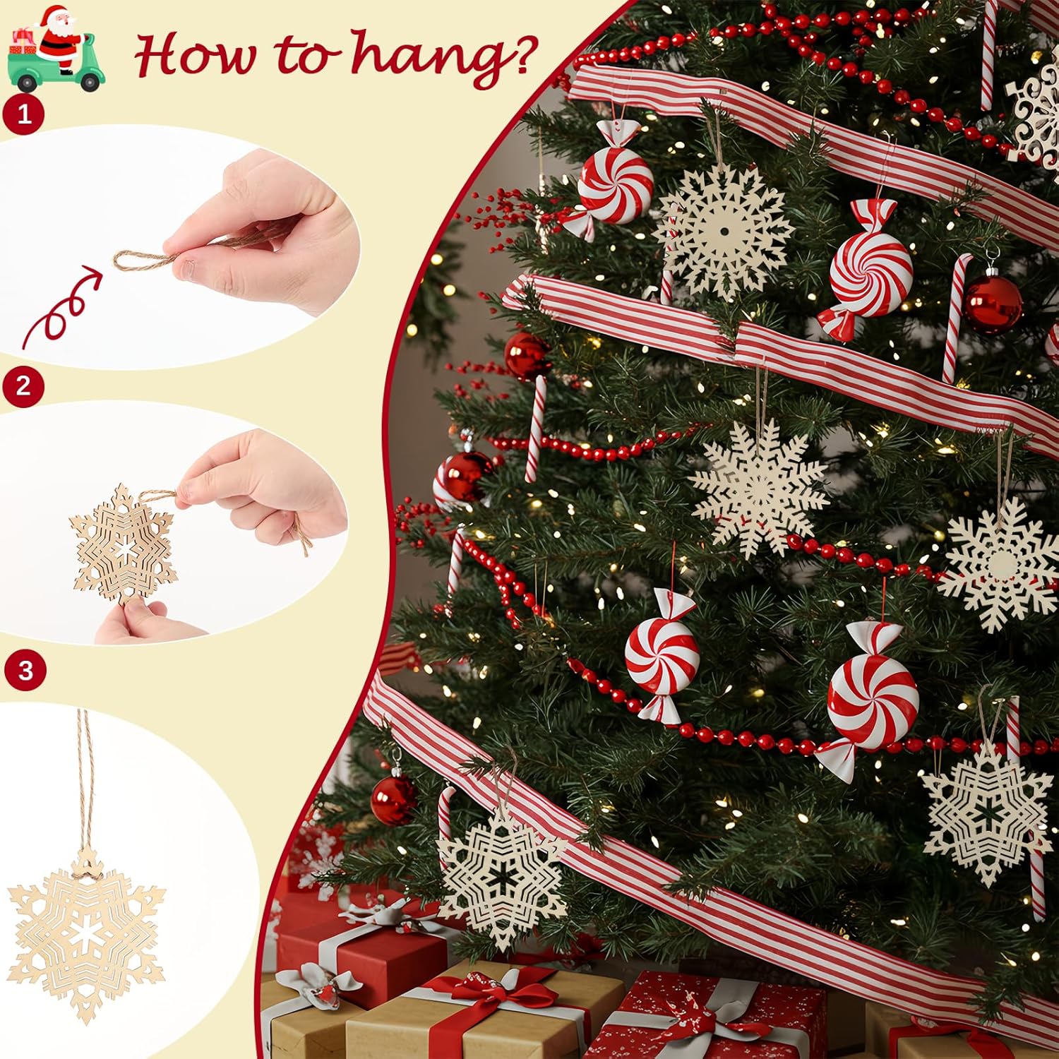 - Set Includes: 27 wooden snowflake ornaments (9 different styles, 3 pieces of each)