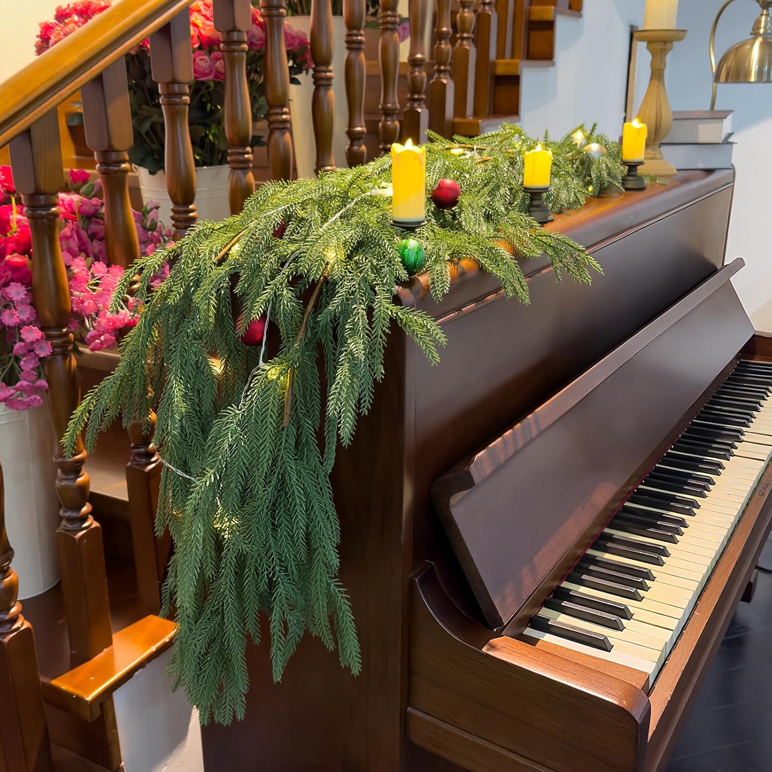 - Creates a cozy, festive atmosphere with a natural Christmas greenery look