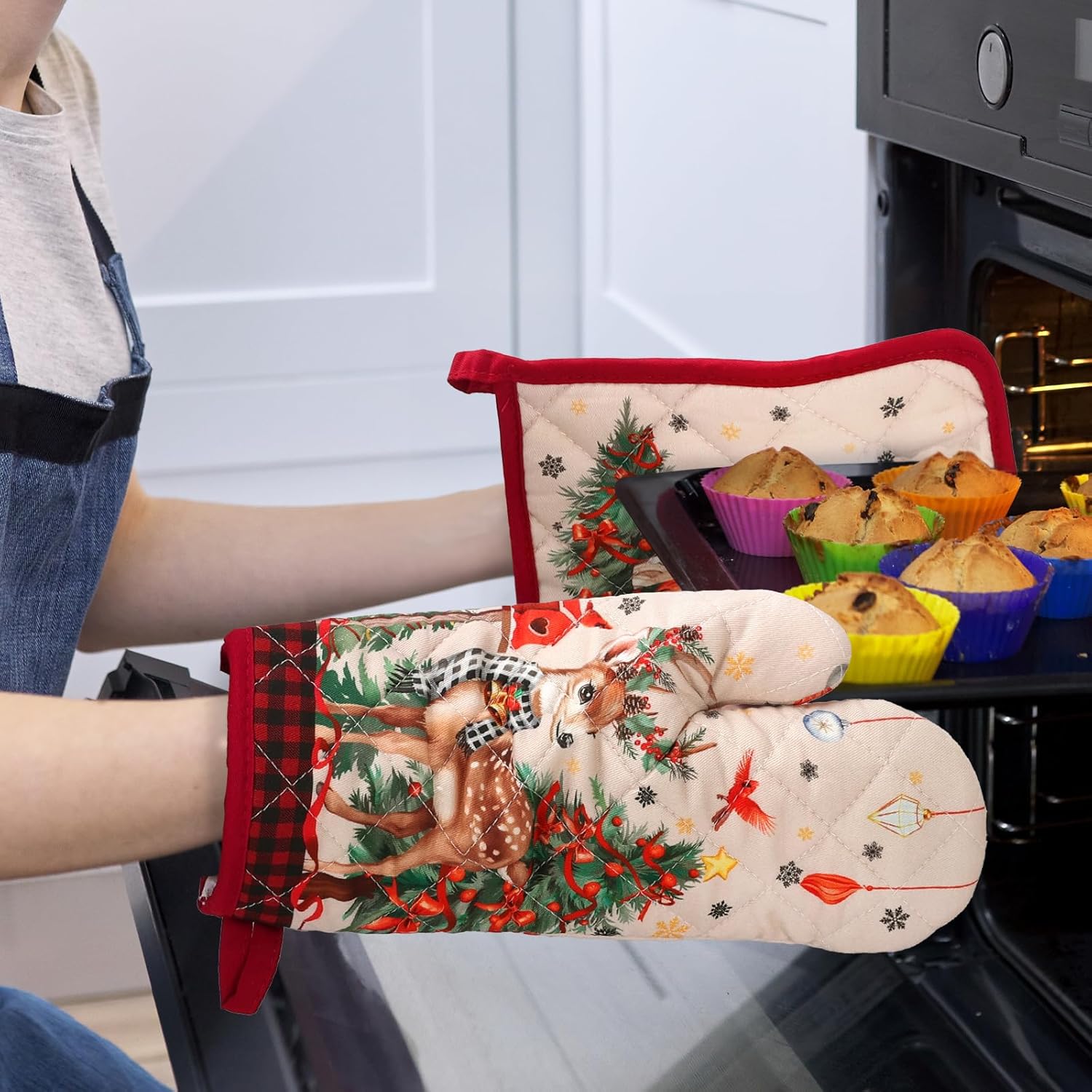 - Set includes pot holders and oven mitts, made from 100% cotton for durability and comfort