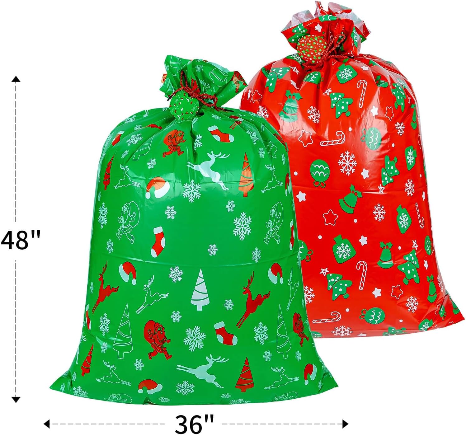 2PCS Large Christmas Santa Gift Sacks 48x36 Inch Jumbo Holiday Gift Bags