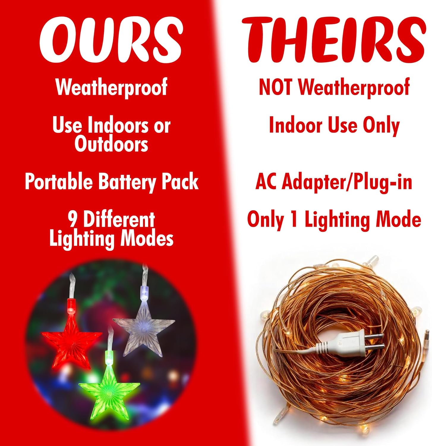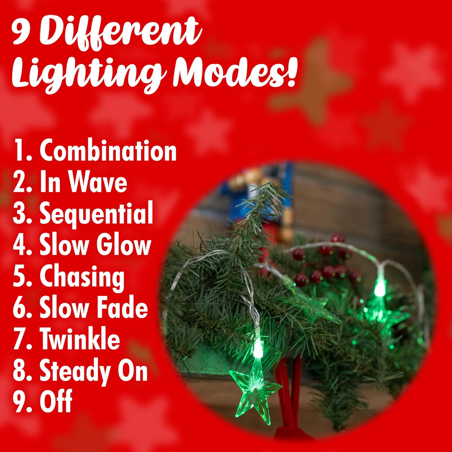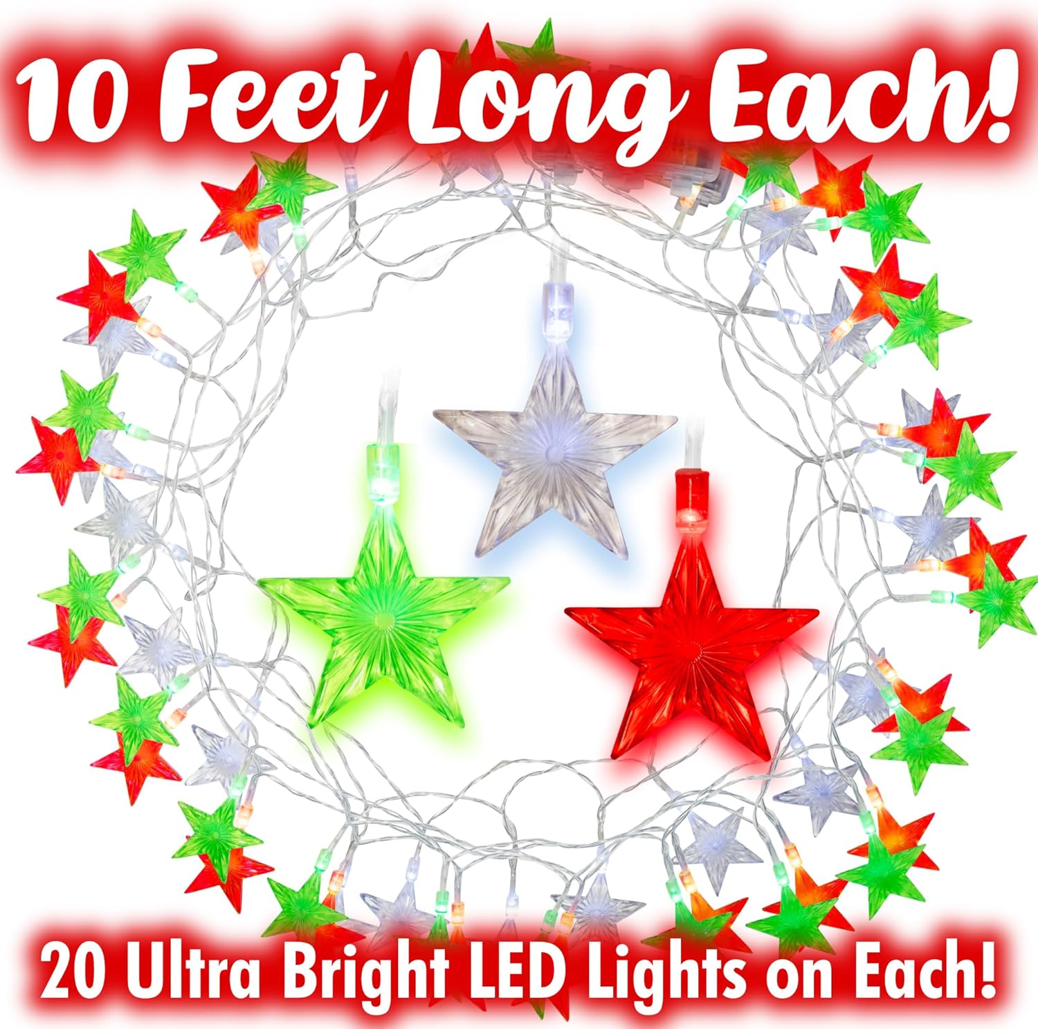 3 Pack Christmas Star String Lights 10FT 60 LED Red Green White Waterproof