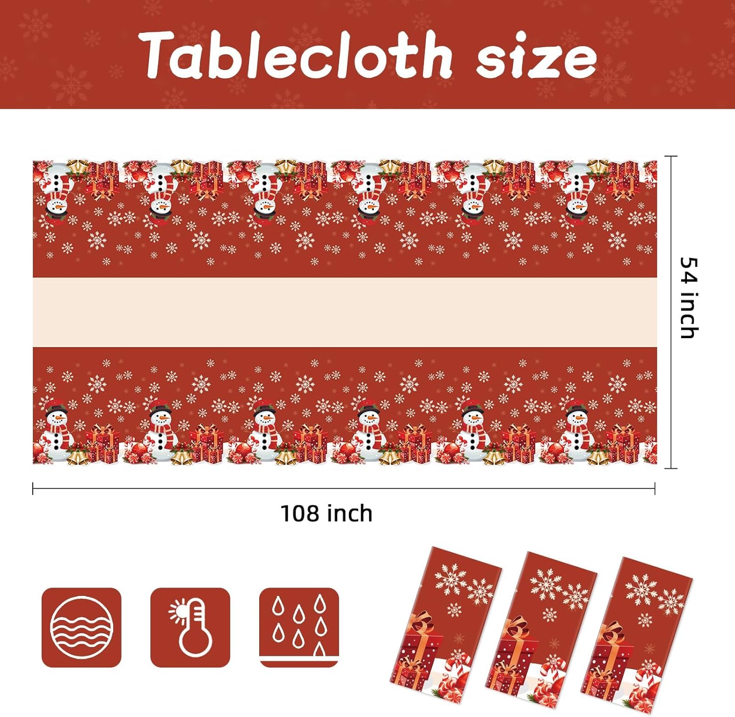 - Complete Set: Includes 3 Christmas plastic tablecloths