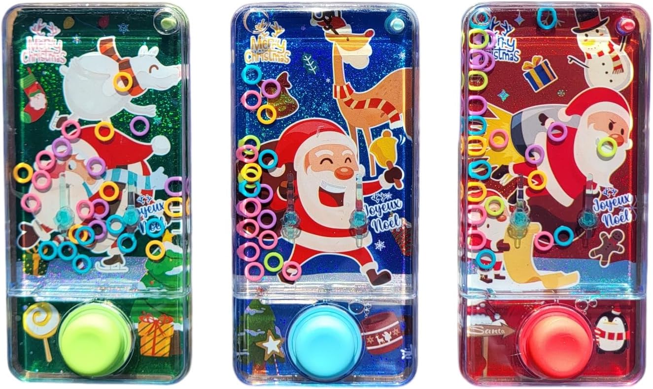 Handheld Water Game Ring Toss Toys! Packed in a small, easy-to-wrap gift box, they make gifting a breeze. These fun and colorful toys feature a classic water ring toss game, adding excitement and entertainment to any holiday celebration. Ideal for kids and grandkids aged 3 and up, they make an excellent Christmas present and are sure to keep children engaged for hours. Whether at family parties or as a simple holiday treat, these Merry Christmas-themed water games are a delightful addition to your festive season.