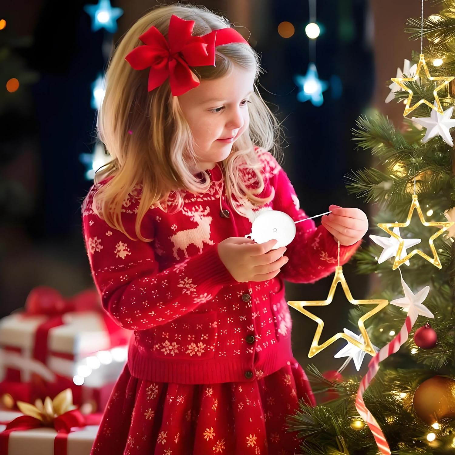 Add a magical sparkle to your windows with these Christmas Window Lights! This set includes 3 star-shaped lights, each wrapped with 10 warm white LEDs that create a cozy, twinkling effect. Powered by 3 AAA batteries (not included), these lights are incredibly convenient—no need for power cords or plugs. Designed for durability and reusability, these charming lights are perfect for brightening up your home during the holiday season. With two light modes and a built-in timer function, they offer flexibility and ease, allowing you to create the ideal festive atmosphere.