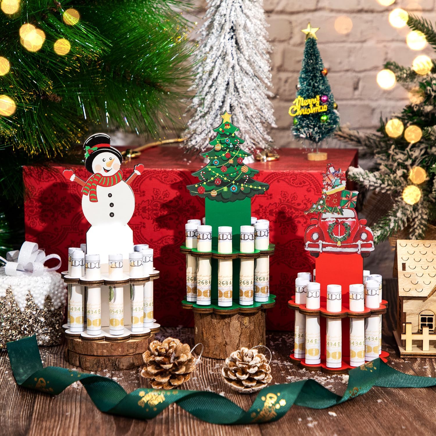 Add a festive touch to your holiday gifting with these charming Christmas Money Holders! This set includes three unique designs— a green Christmas tree, a white snowman, and a red Christmas car—perfect for presenting cash or gift cards to friends and family. These holders are crafted from premium natural wood, ensuring they are both sturdy and lightweight. While they don't come with money, they provide a delightful and practical way to present your gifts this holiday season!