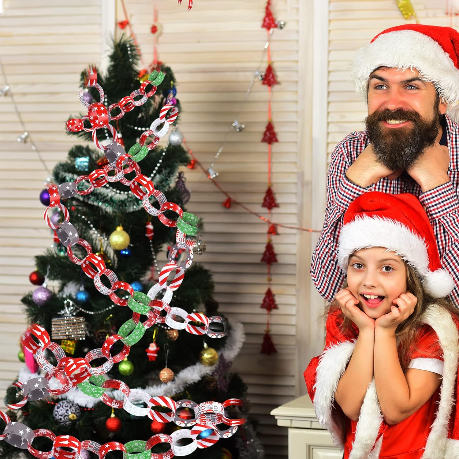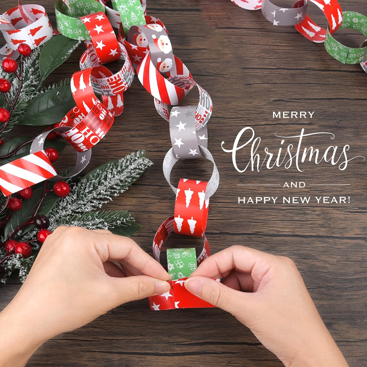 Add a fun and festive touch to your holiday decorations with this Set of 300 Links Merry Xmas Paper Chains. Featuring 10 different Christmas-themed designs, these double-sided printed paper chains come pre-coated with self-adhesive strips, so you don't need any glue to assemble them. Whether you’re decorating the tree, walls, windows, or party space, these vibrant and easy-to-use paper chains will create a joyful holiday atmosphere in minutes!