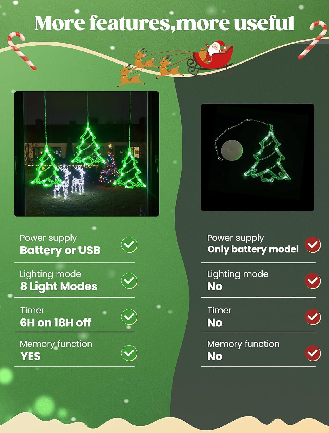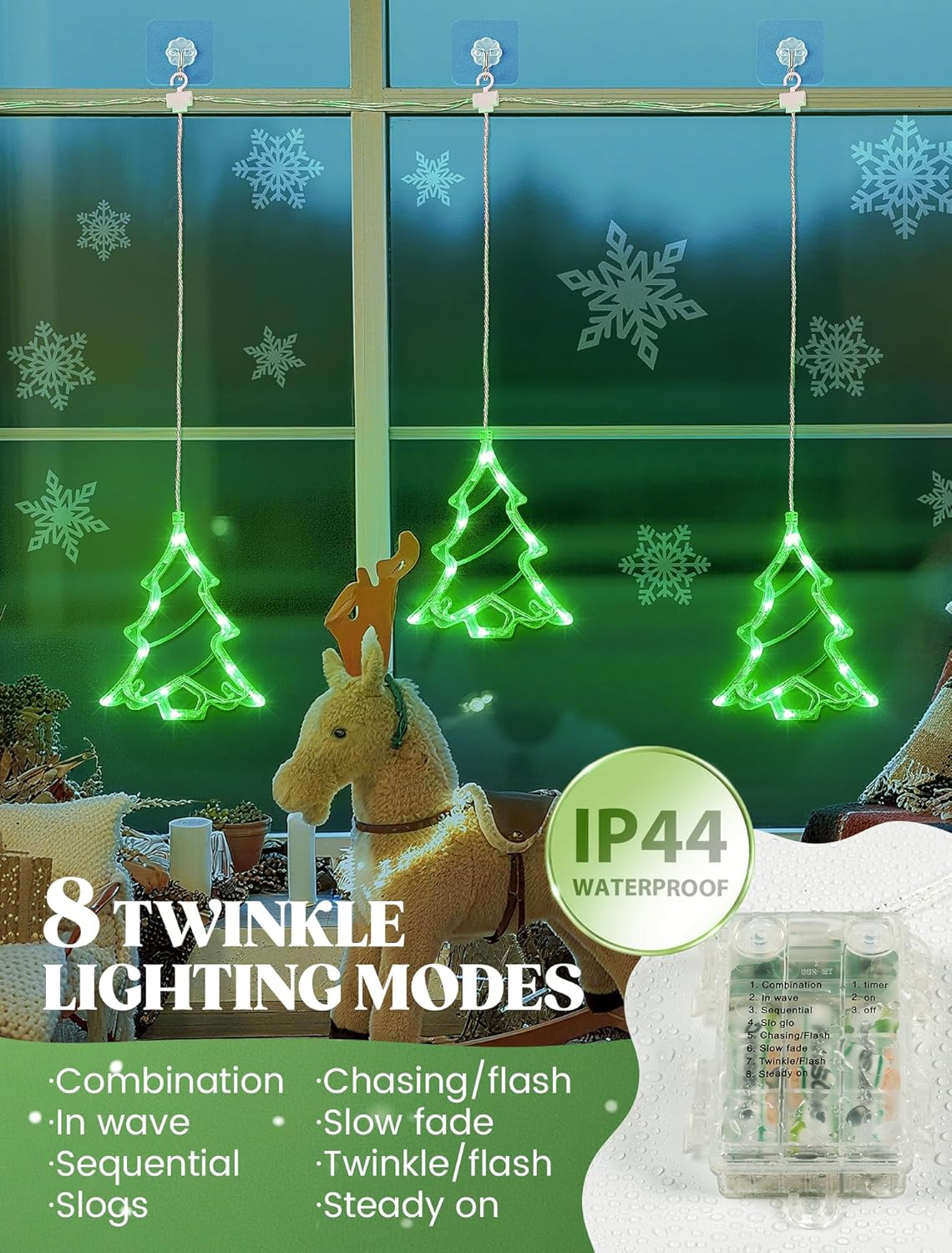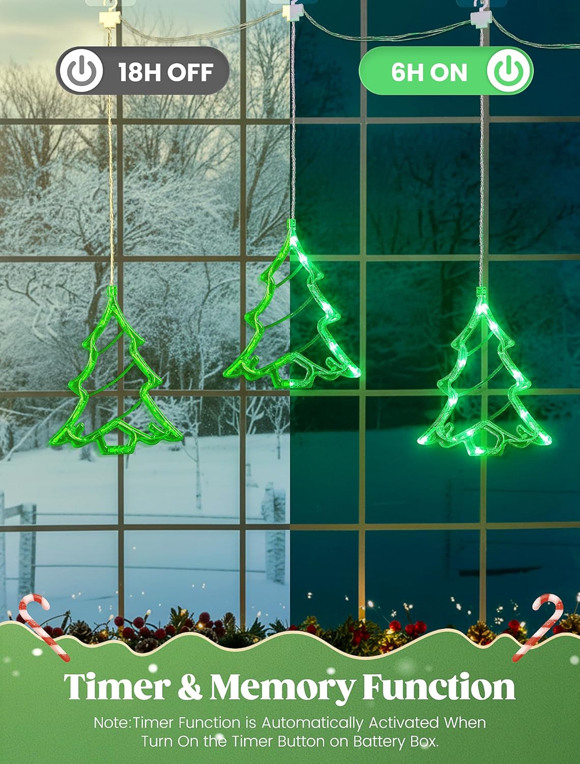 - Festive Christmas Tree Design: Includes 3 tree-shaped lights, each adorned with 10 LEDs, creating a magical and inviting window display.