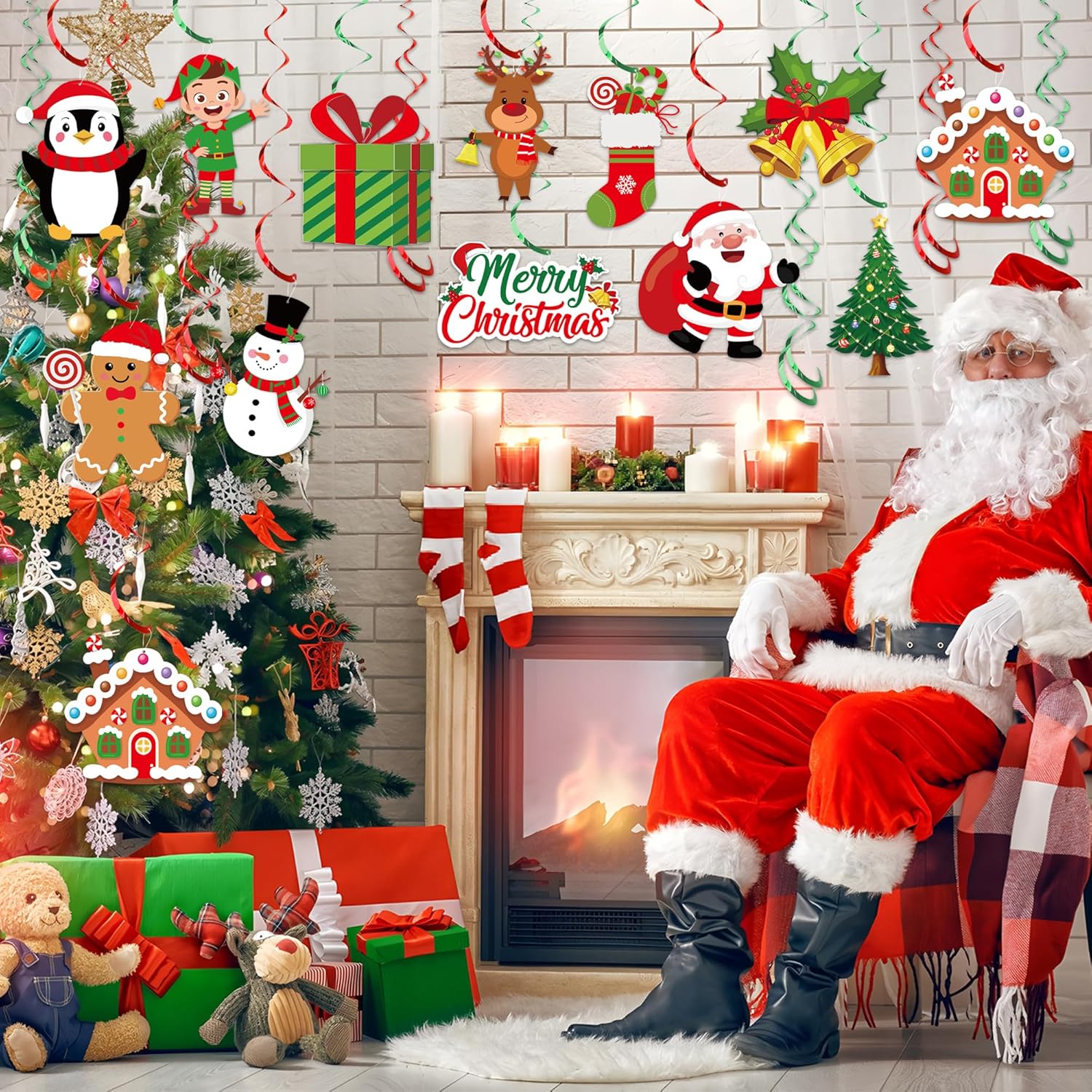 - Complete Set: Includes 30 decorations—12 designs of Christmas-themed cards (2 pieces per design), 12 single swirl decorations in red and green, plus 6 double swirl hangers