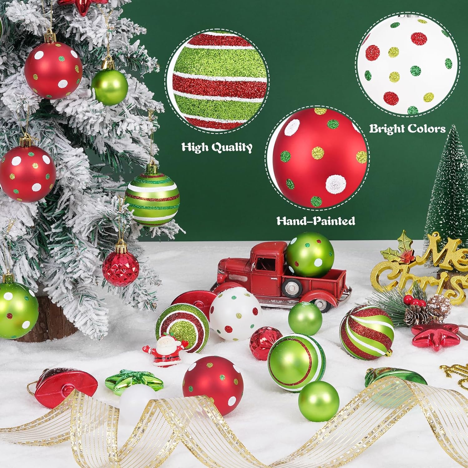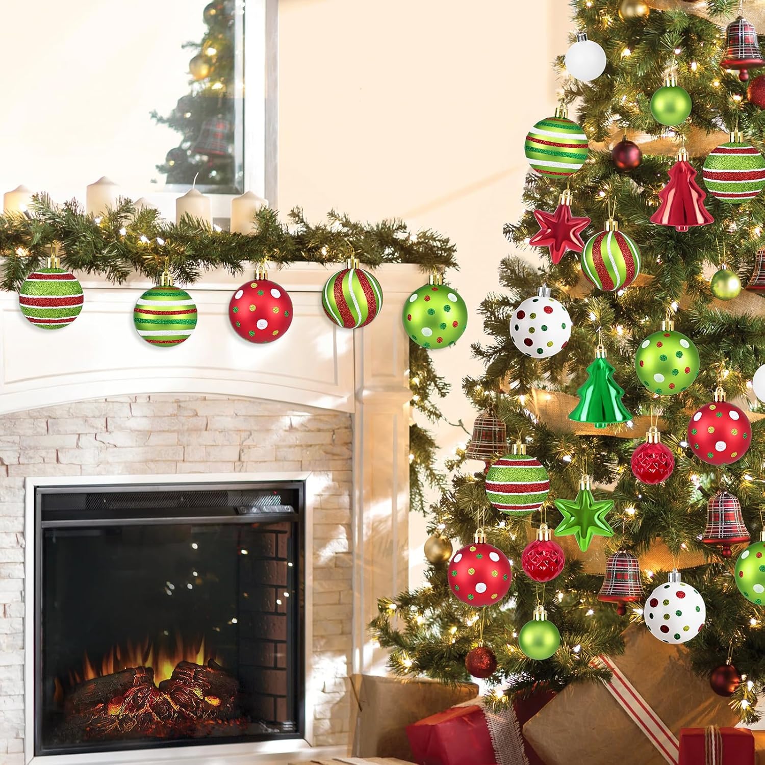Make your Christmas tree shine with this 30-Piece Christmas Ornaments Set! Thoughtfully designed, this set includes a perfect mix of sizes and shapes to create a stunning, layered look on your tree. You’ll get 12 red and green Christmas ball ornaments (2.4 inches and 1.6 inches), 2 Christmas tree ornaments (2.8 inches), and 4 star-shaped ornaments (2 inches). These ornaments not only enhance the visual appeal of your tree but also provide the ideal variety for your holiday decorating and gifting needs. Crafted from durable, shatterproof plastic, these ornaments will last season after season, ensuring your tree stays beautiful without the worry of breakage.
