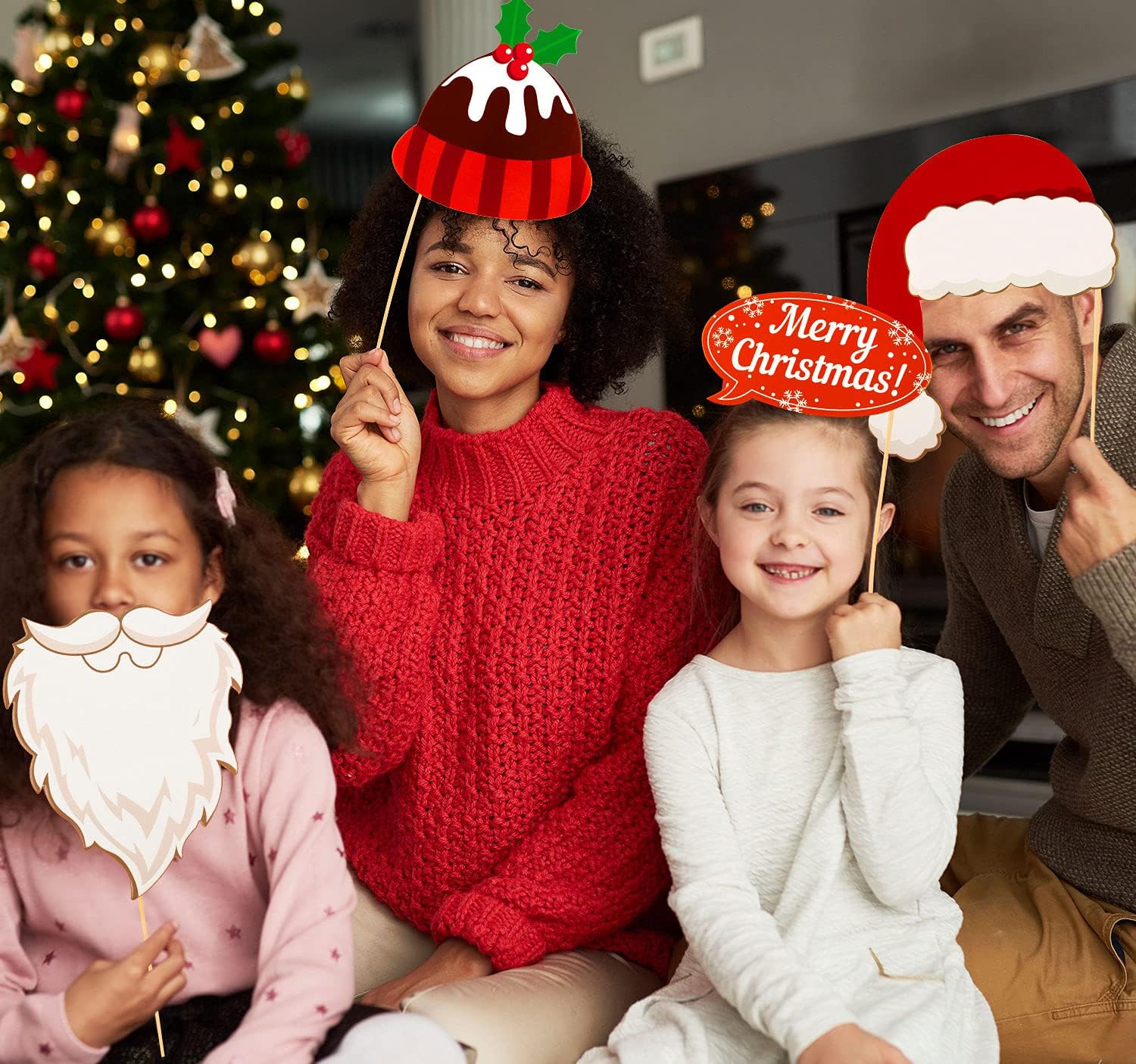 - Complete Set: Includes 32 Christmas-themed photo props, designed to create fun and festive photo opportunities at your holiday party.
