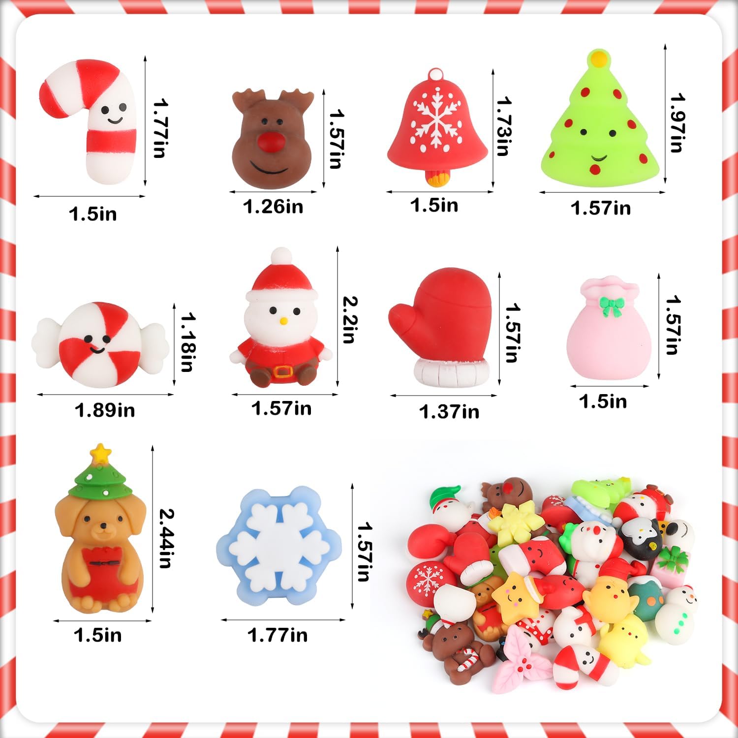 - 36 PCS Mochi Squishy Toys: Includes 36 squishies in a variety of colors and shapes, perfect for Christmas-themed play and decoration.