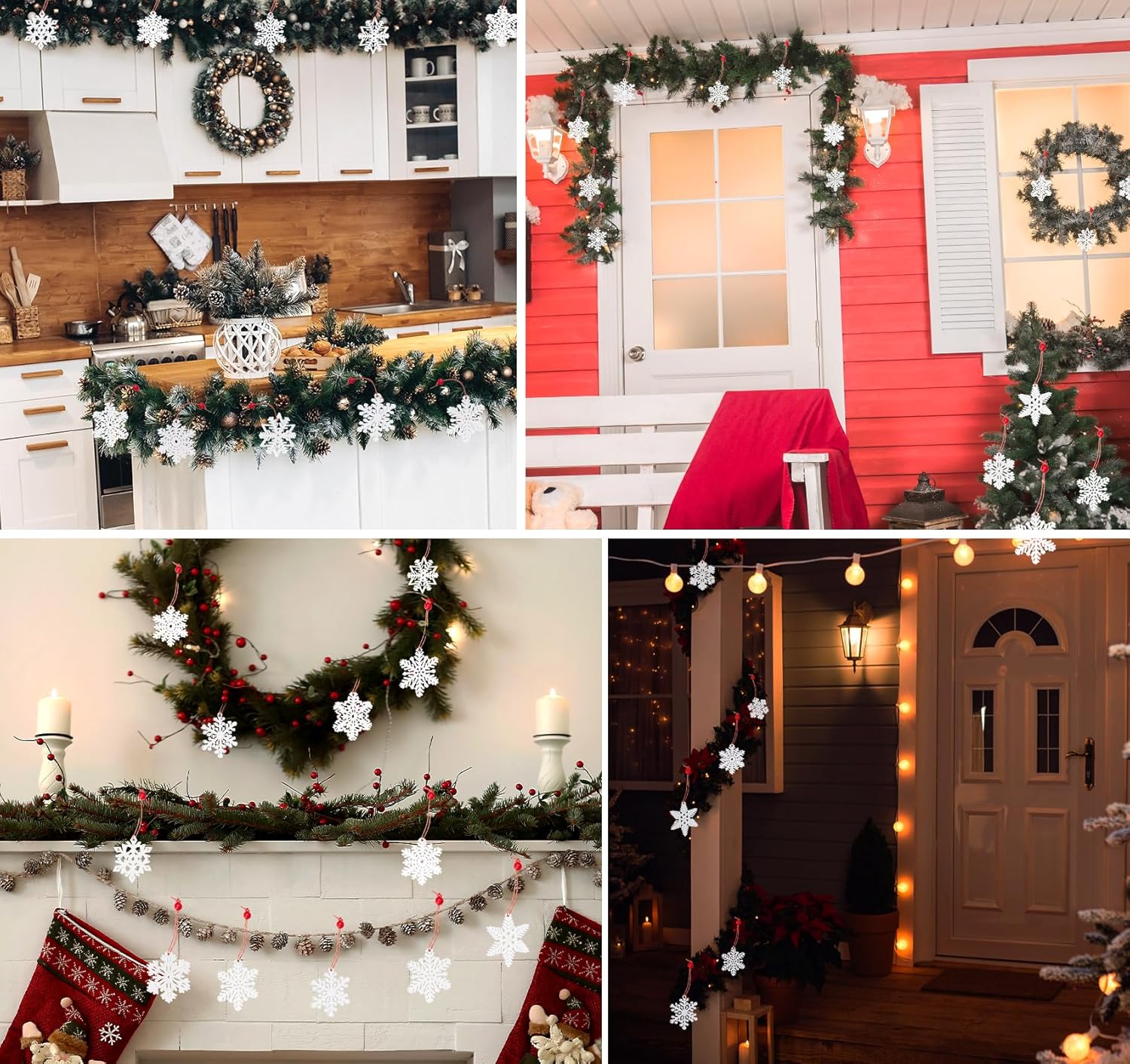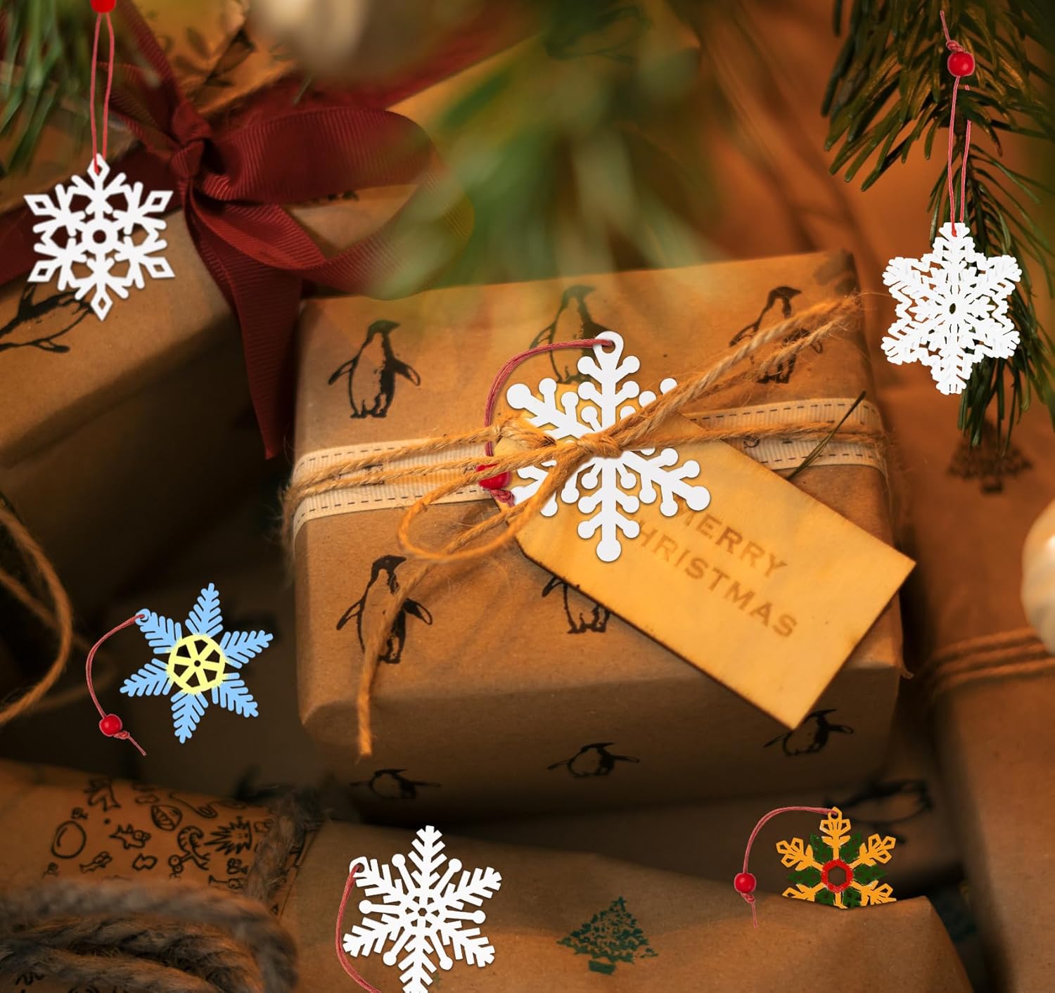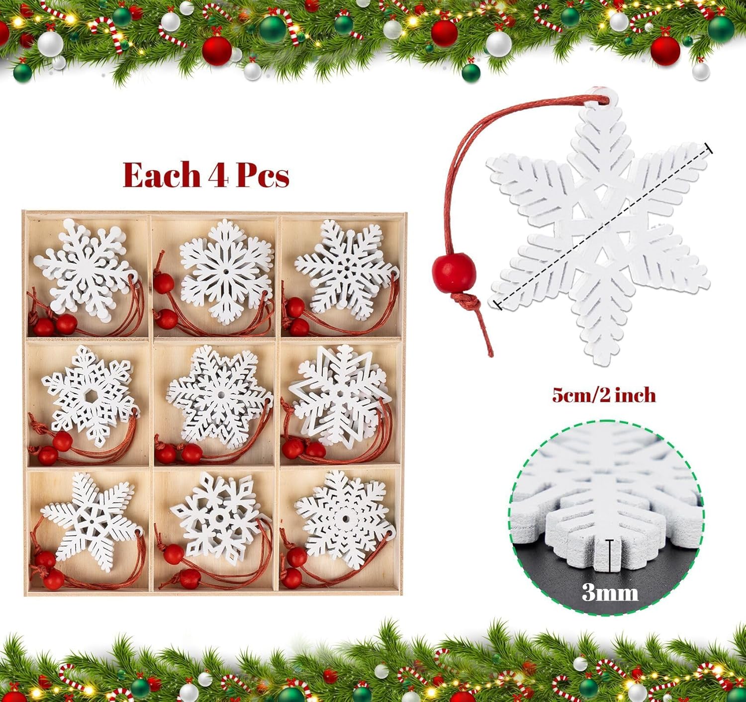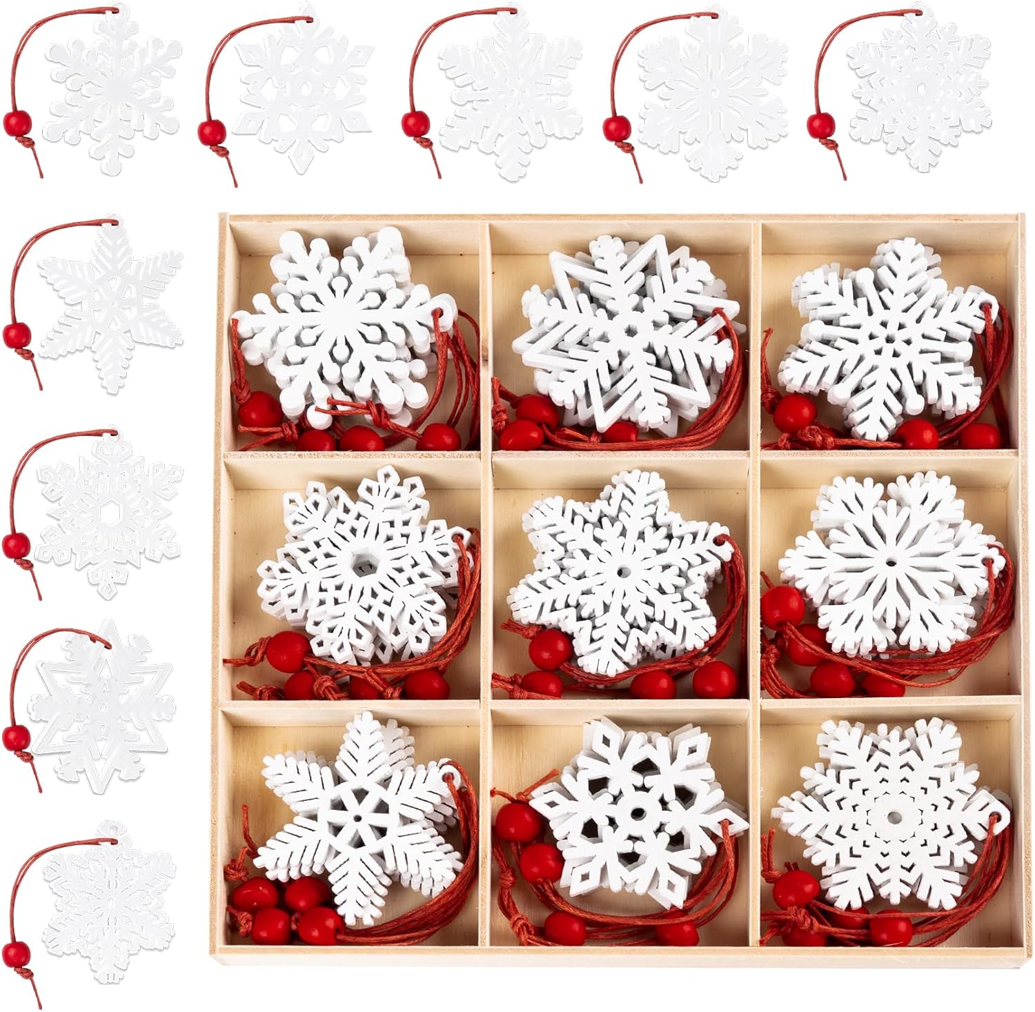 36-Piece Wooden Snowflake Ornaments for Christmas Tree – White Holiday Decorations & Pendants