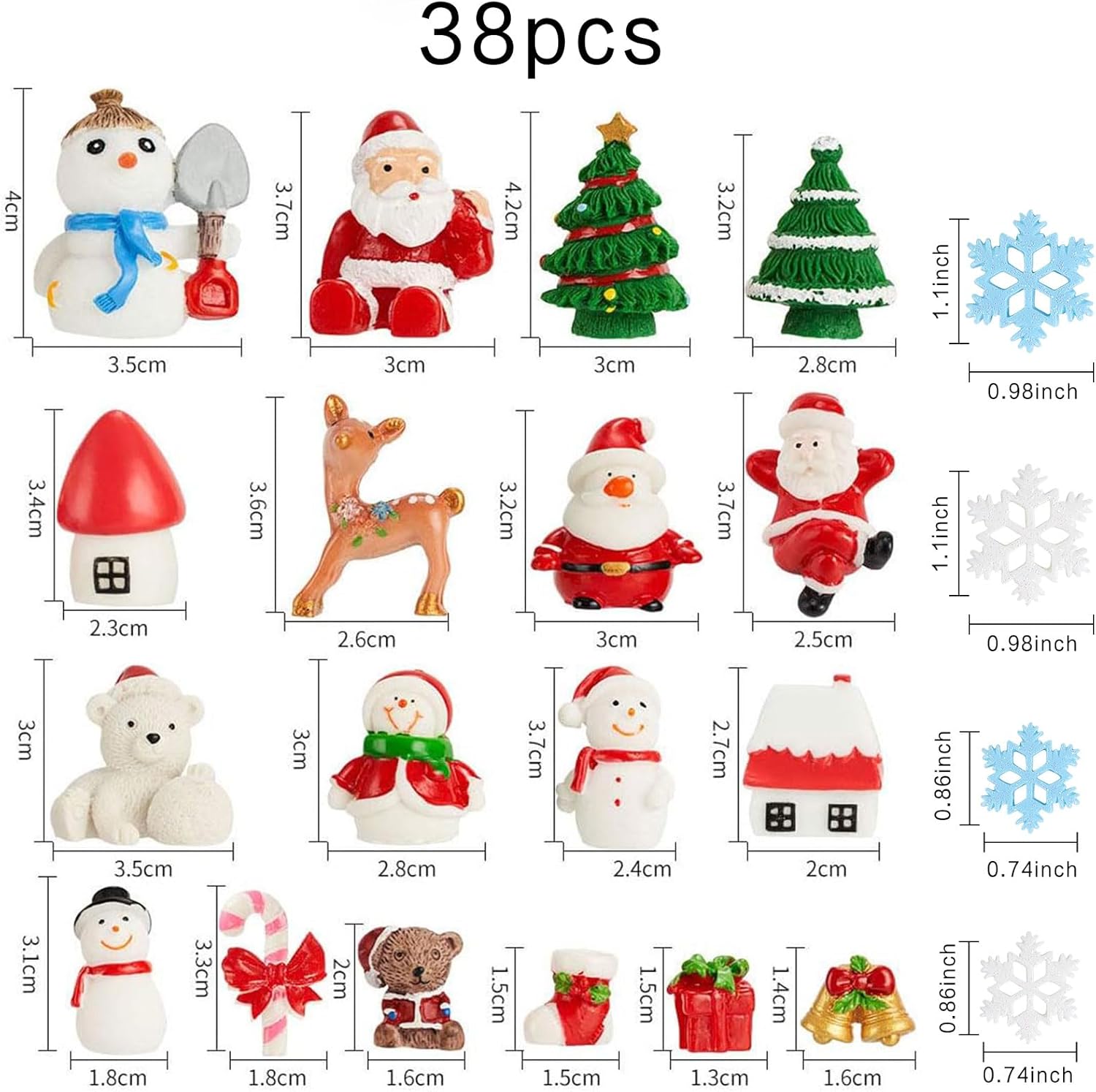38 PCS Christmas Miniature Figurines Ornament Kit Santa Tree Resin Decor