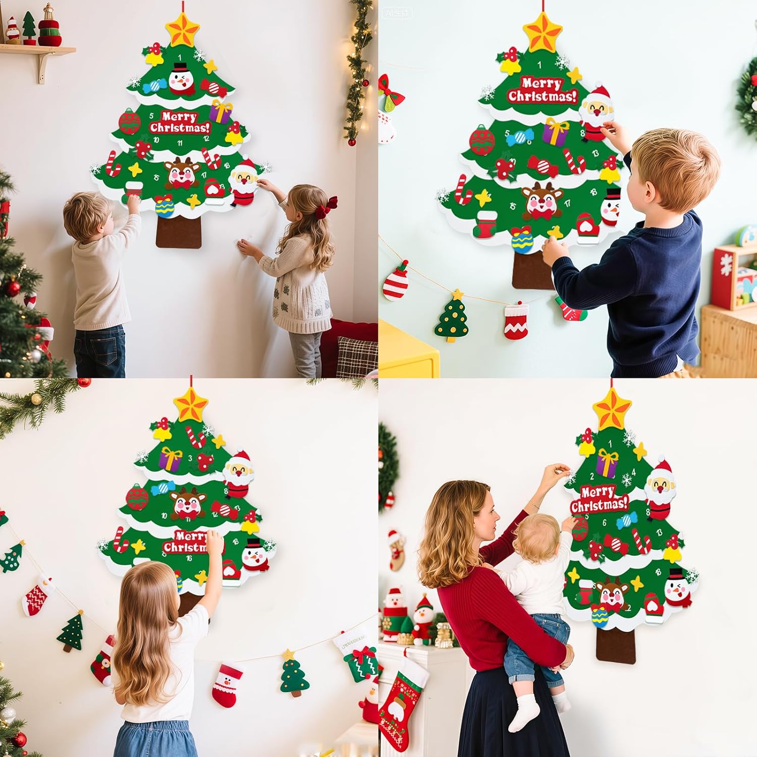 - Complete Countdown Tree Set: Includes a felt Christmas tree and 24 detachable ornaments, each with a colorful, cartoon design.