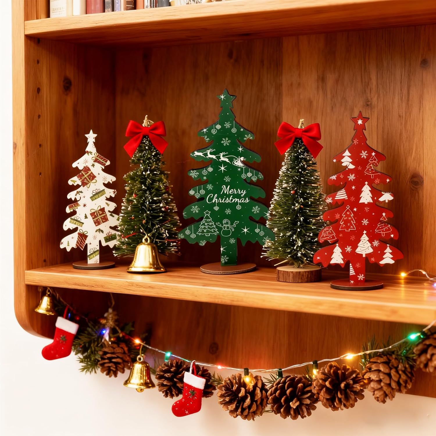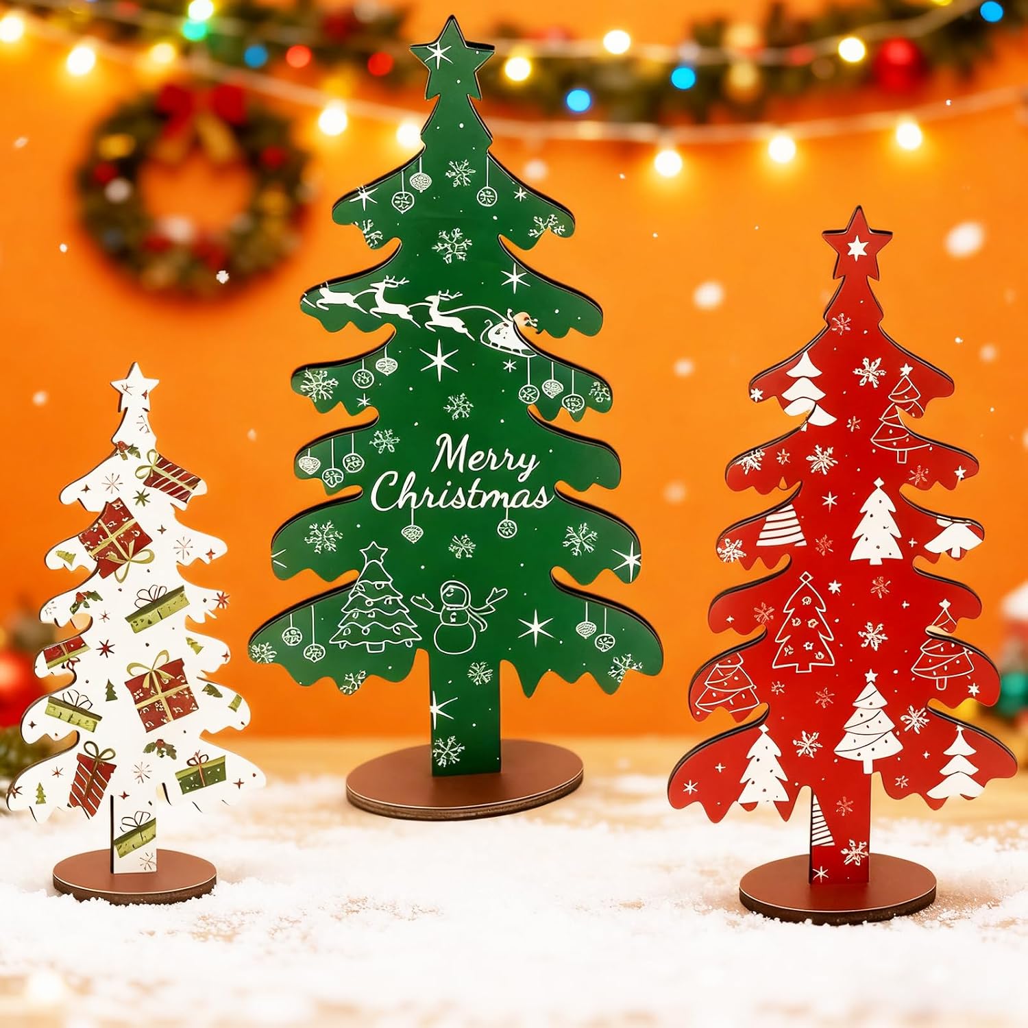 3PCS Wooden Christmas Tree Tabletop Decor for Home Shelf Mantel