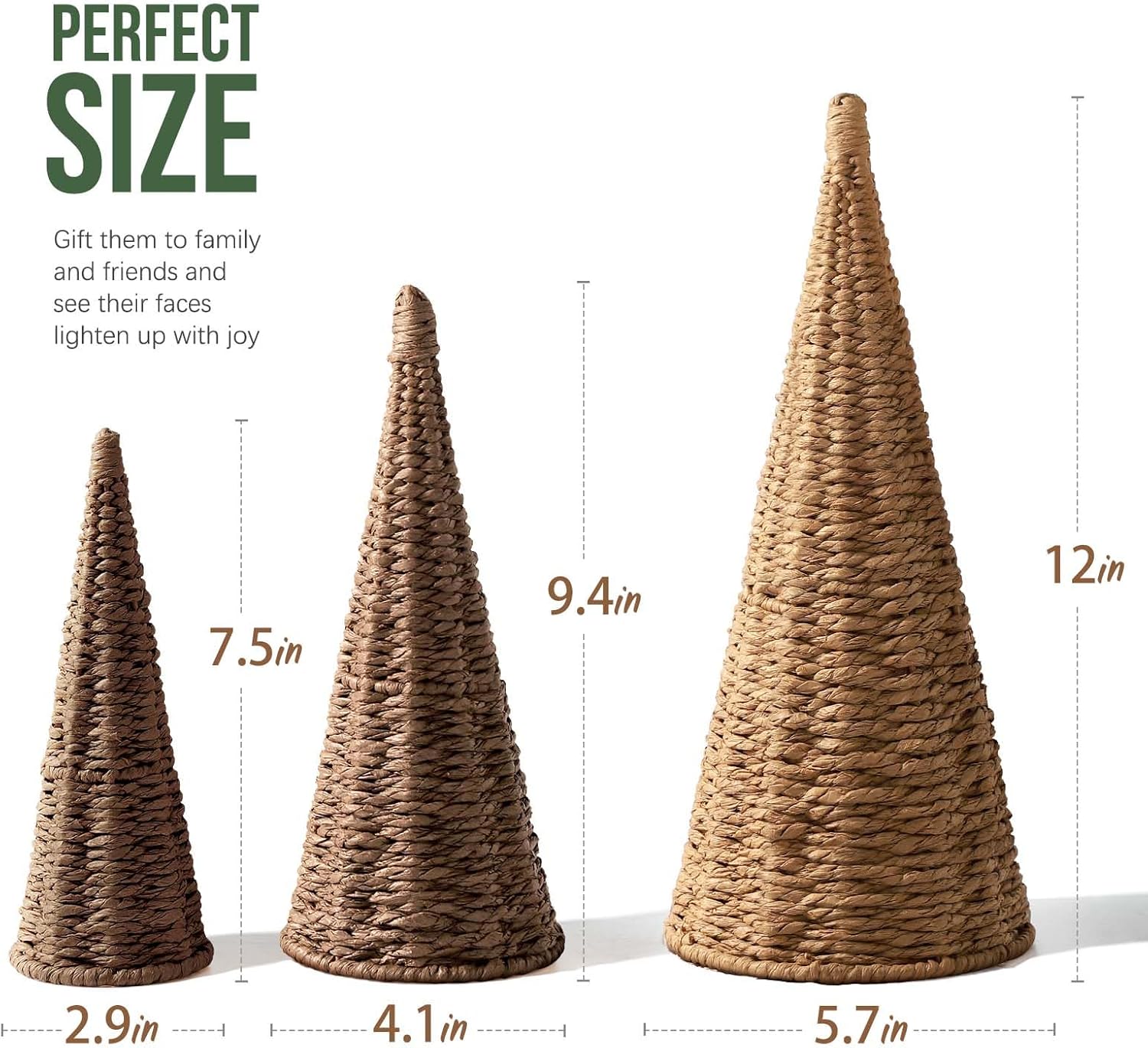 Add a charming touch to your holiday decor with this set of 3 small Christmas trees, each in a different size to suit various needs. Perfect for Christmas village sets, table centerpieces, or general winter-themed decor, these mini trees bring a cozy, festive feel to any room. Made from sturdy natural paper with a beautiful braided pattern and solid color design, these trees are both durable and stylish. The rustic, retro-inspired design blends seamlessly with modern Christmas decorations, elevating your home with a touch of elegance and holiday cheer.