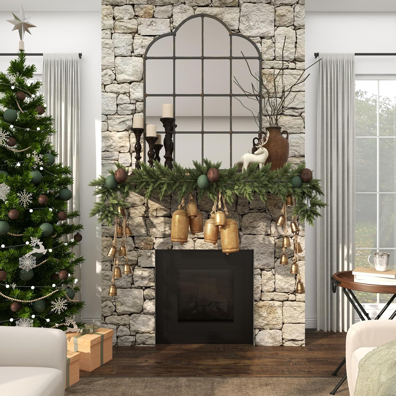 Add a touch of free-spirited charm to your home or outdoor space with these Bohemian Bells Hanging on a Rope. Featuring vibrant hues and eye-catching patterns, these cylindrical metal cow bells bring whimsical accents and rustic elegance to any setting. Crafted from high-quality iron and natural jute rope, the bells showcase a distressed gold finish with black clappers, perfectly blending durability with style. Designed to be both decorative and functional, these bells create gentle, melodic sounds when rung, making them a unique and charming addition to your holiday décor or everyday living space.