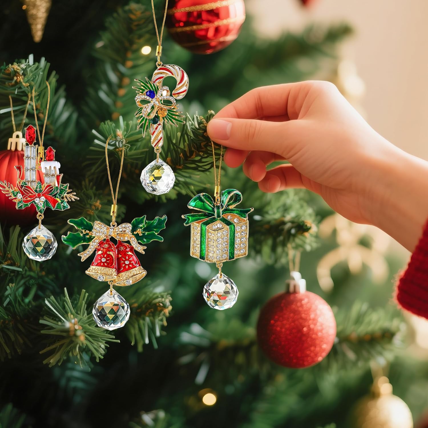 Add a touch of elegance and sparkle to your holiday decor with our Unique Rhinestone Christmas Ornaments. Featuring classic designs like candles, bells, candy canes, and gift boxes, these ornaments are adorned with dazzling rhinestones that catch the light and elevate your Christmas tree or home decorations. The vibrant color design and intricate details make each piece a standout addition to your festive setup. This set includes 4 charming ornaments, each measuring between 4.7-5.5 inches, offering a beautiful variety of styles to enhance your Christmas celebration.