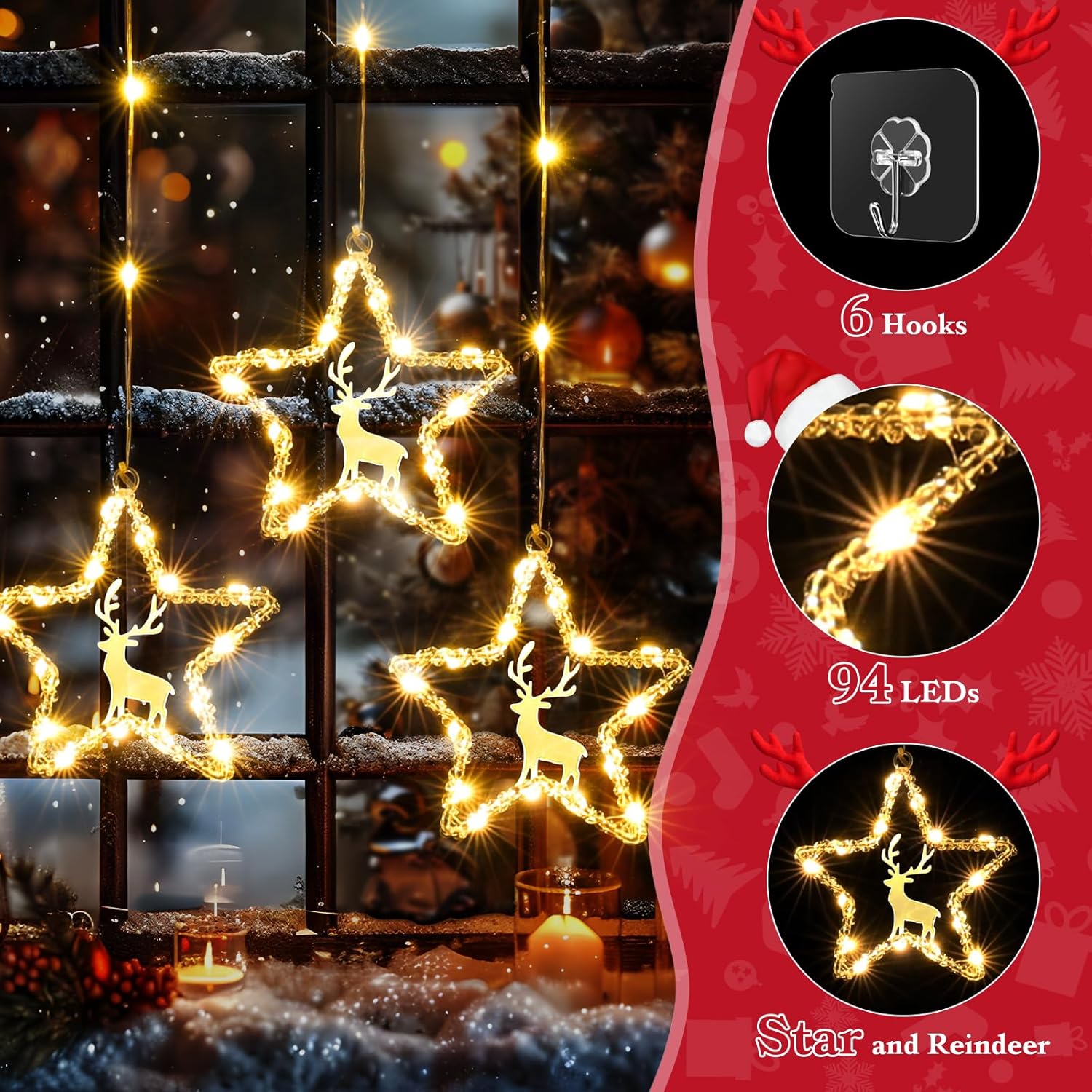 - Festive Design: 5 sparkling stars with deer patterns, illuminated by 94 warm white LED lights for a magical holiday ambiance.