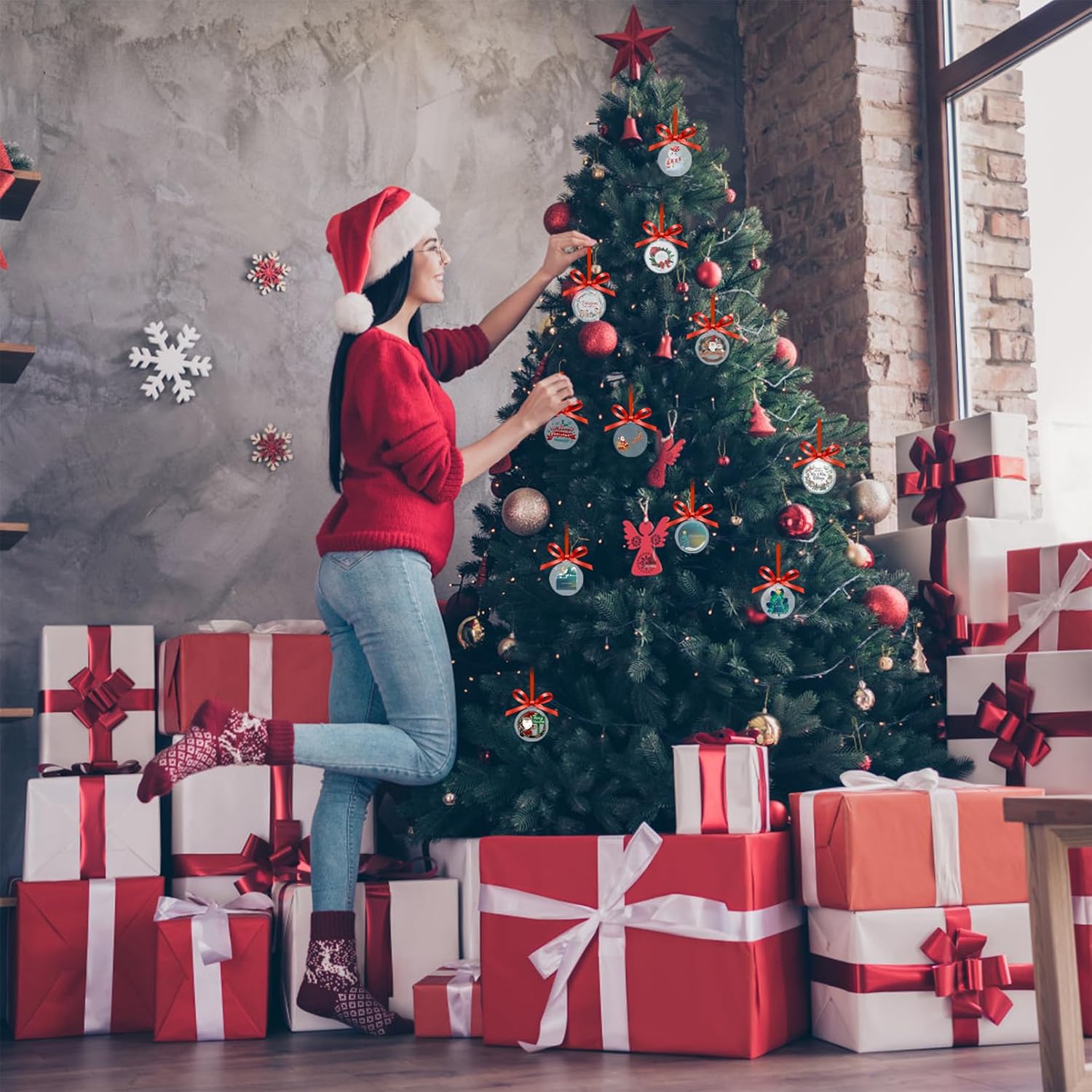 - Complete Crafting Kit: Includes 50 acrylic circles, 50 decorative stickers, and a roll of red ribbon for hanging.