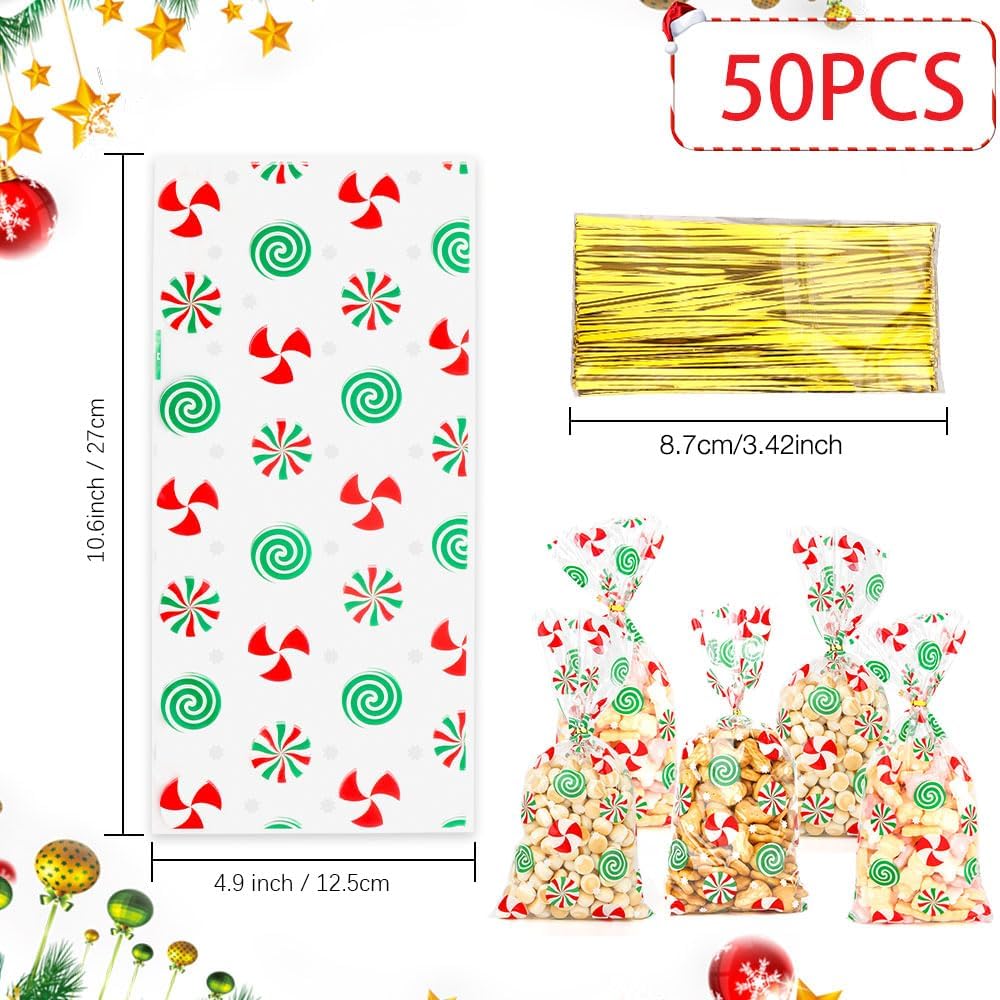 Spread the holiday cheer with these Christmas Gift Bags! This set includes 50 clear, resealable cellophane bags and 50 gold twist ties, making it easy to package up your festive goodies. Each bag measures 27 cm x 13 cm (10.6 x 5.1 inches), with twist ties that are 10 cm (4 inches) long, ensuring a secure and stylish closure for your treats. The bags have a thickness of 0.03 cm, providing a sturdy and reliable option for gift-giving.