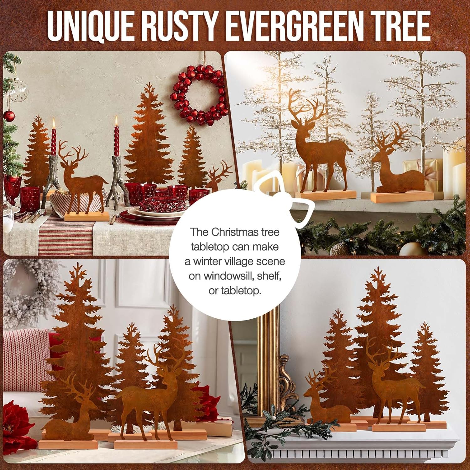 - Complete Décor Set: Includes 3 metal Christmas trees in varying sizes and 2 metal elk figures