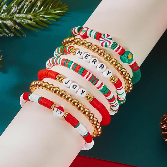 - Festive Design: These bracelets are adorned with colorful clay beads in Christmas-themed colors, making them perfect for adding a bit of holiday sparkle to your outfits.