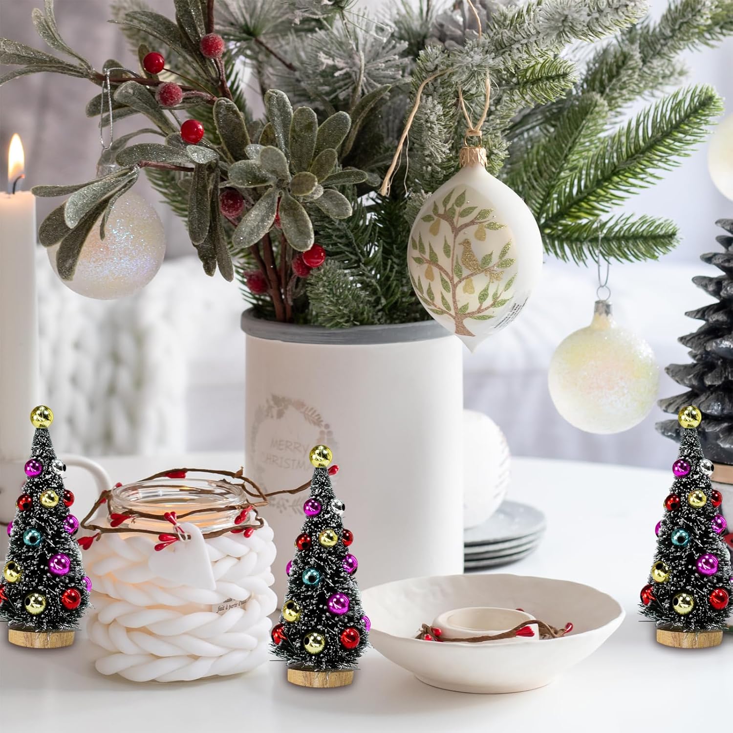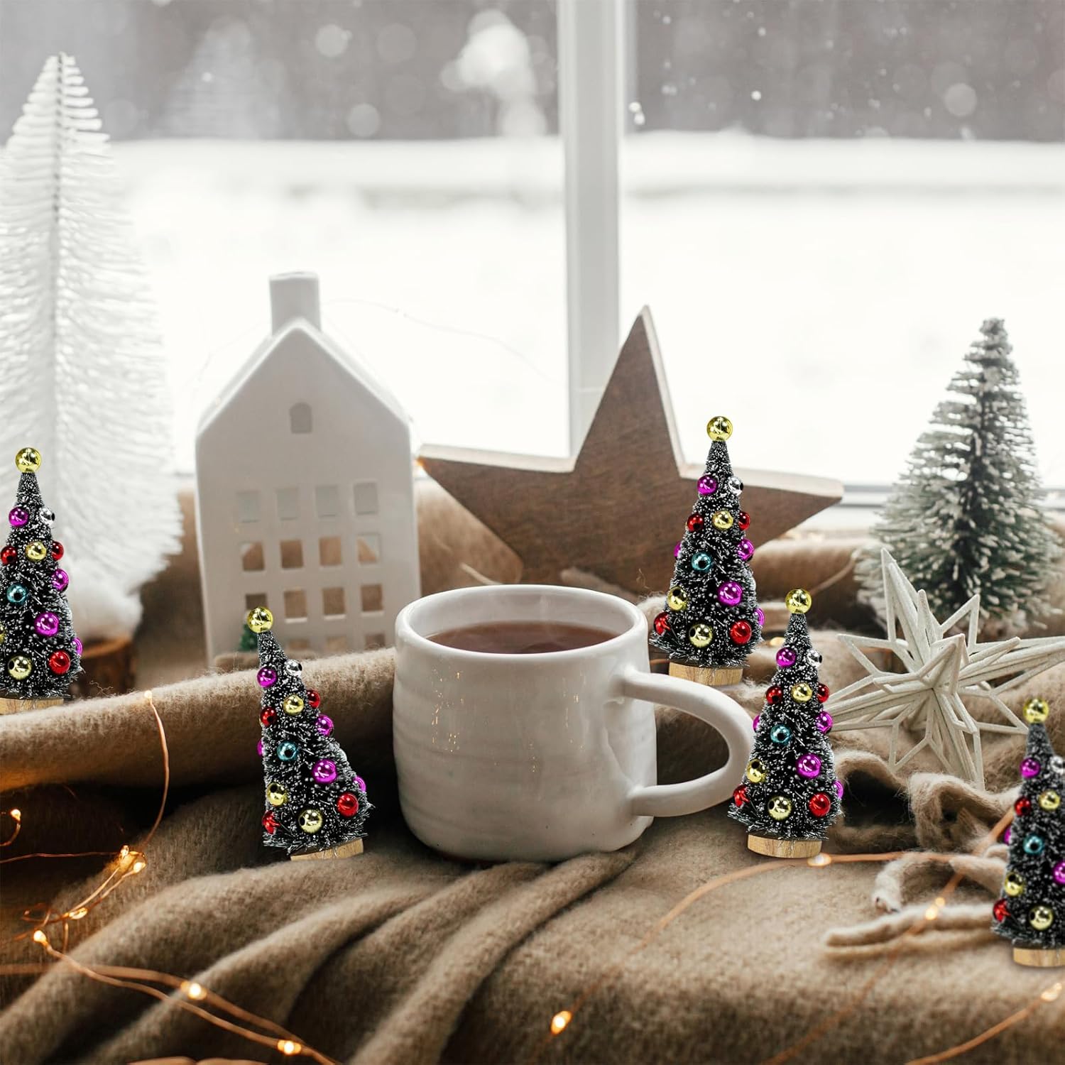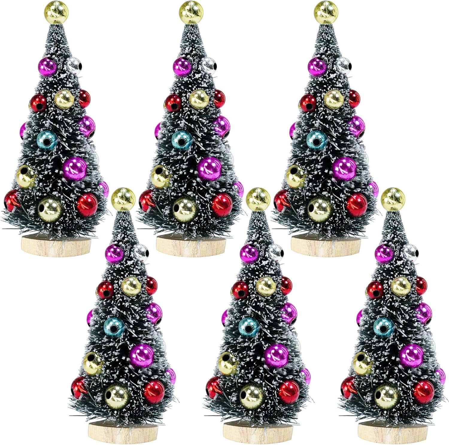 Add a charming and festive touch to your holiday décor with the 6-piece Miniature Bottle Brush Christmas Trees set. Each tree stands at 4.3 inches tall and features a frosted finish, perfect for creating a cozy winter wonderland atmosphere. The set comes neatly packaged in a white gift box, making it a delightful gift or a seasonal decoration to display in your home. These adorable trees are great for holiday displays, Christmas train sets, winter fairy gardens, tiered displays, or craft projects, offering endless decorating possibilities.