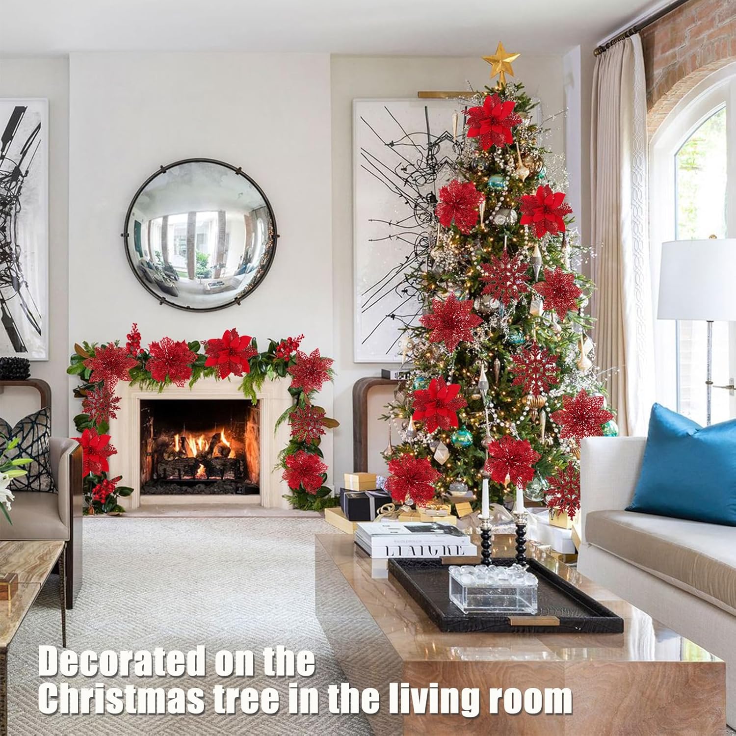 - Sparkling Elegance: The glitter-dusted poinsettias and berry stems bring a vibrant and festive sparkle to your Christmas tree.