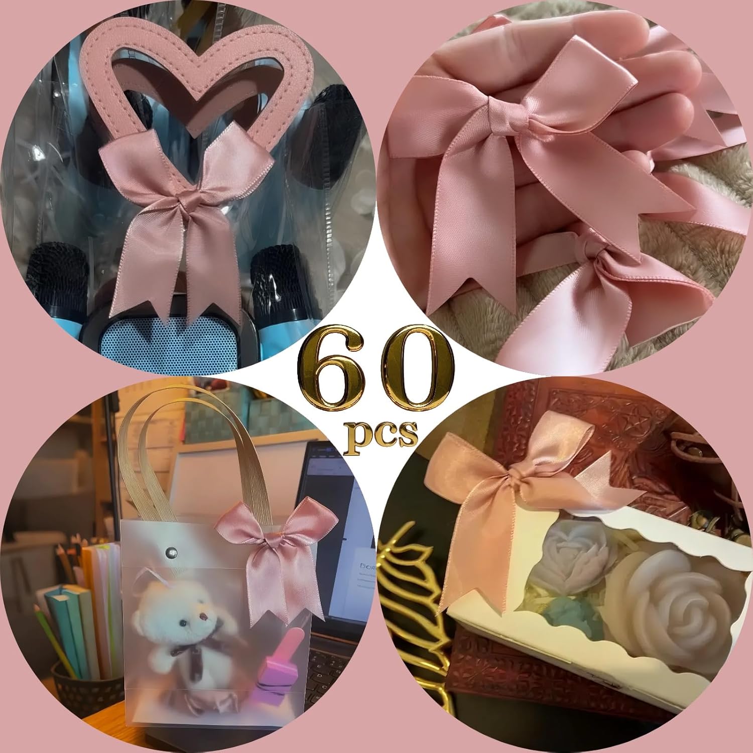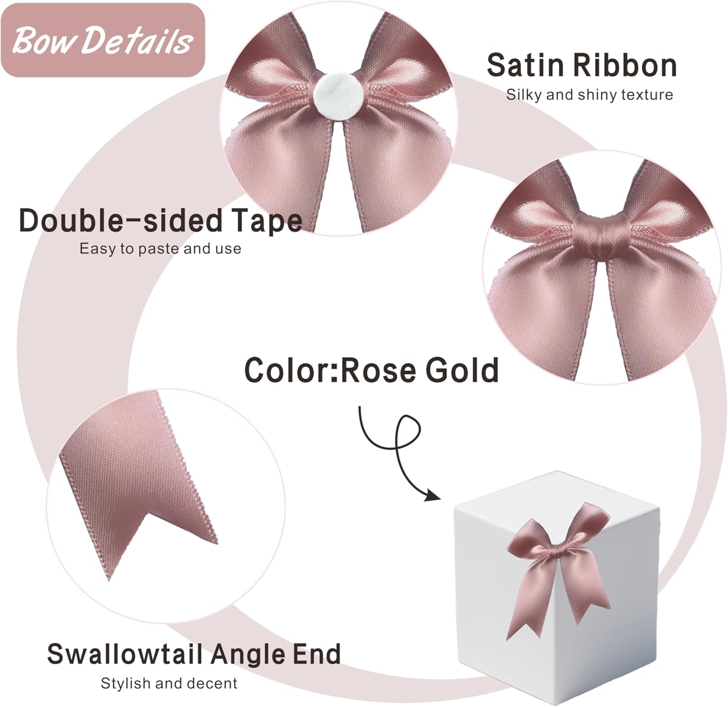 60PCS Rose Gold Satin Ribbon Bows 3.3 Inch Premium Gift Wrap Decorations